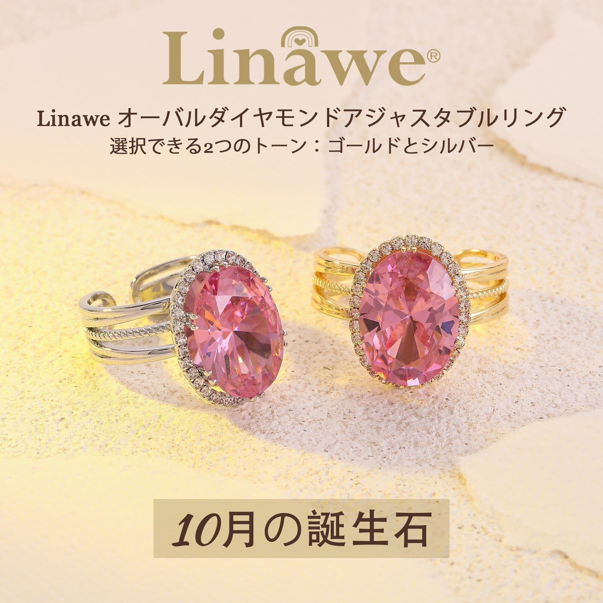 【人気商品】[Linawe] モアサナイト リング 指輪 フリーサイズ、人工ダイヤモンド ゆびわ アクセサリー レディース、14K ゴールド、ピンクゴールド、ホワイトゴールドメッキ銅