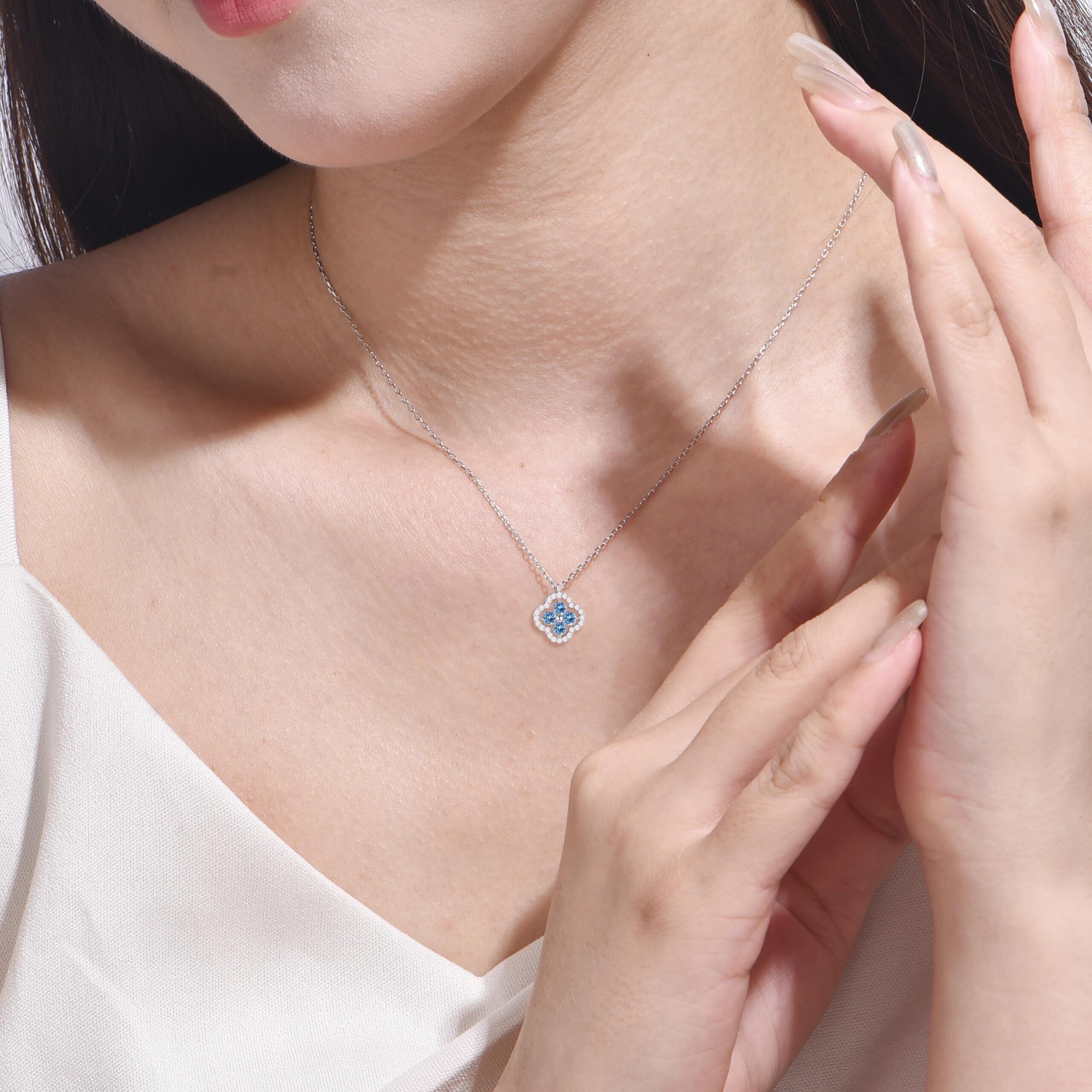 9月誕生石:9月の誕生石であるサファイアは、高貴さ、忠誠心、そしてロマンスを象徴します。幸運の四つ葉のクローバーとの組み合わせが、あなたの心を明るく照らします。このエレガントなネックレスを身に着けるすべての女性が、限りない魅力を放ちますように