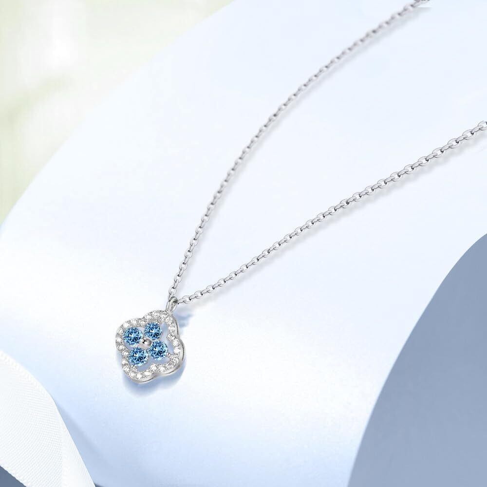 [Free bird] 4つ葉クローバー ネックレス ブルー トパーズ レデイース 11月誕生石 ペンダント 「幸運の象徴」シルバー925 金属アレルギー ジルコニア アクセサリー 誕生日 ジュエリー プレゼント 女性 人気ギフト 十一月 誕生石 秋冬 ネックレス