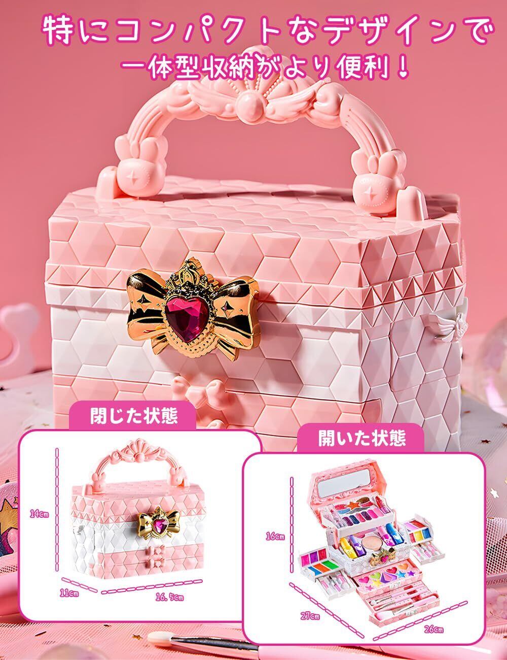 【2022最新】Opard 水で落ちる! かわいいメイクセット女の子 ダイヤモンド型 女の子プレゼント キッズコスメ お化粧セット 子供 、アイシャドウ ネイルポリッシュ リップスティック チーク ネイルシール メイクブラシ 一体型収納ボックス付 鏡付き