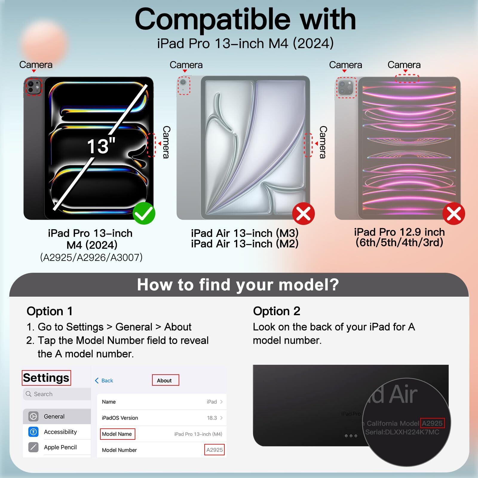 Pencil Pro/Pencil(USB-C)に対応。iPad Pro 13インチM4(2024)用の特別デザインです。対応iPadモデル番号: A2925 / A2926 / A3007。おデバイスの裏面にあるモデル番号をご確認ください