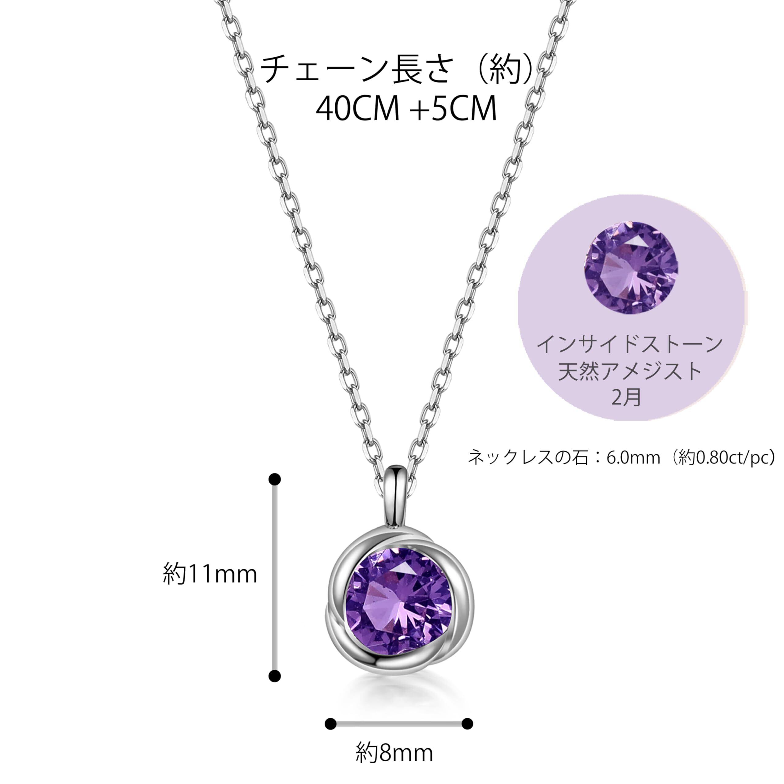アメジスト:2月の誕生石として、石言葉は「愛情」「高貴」「平和」などで、着用者が心の平和を保ちたい時や愛を守りたい時に発揮するできます。アメジストネックレスをつけるととてもエレガントで女性らしい魅力が漂い、女性に大人気です