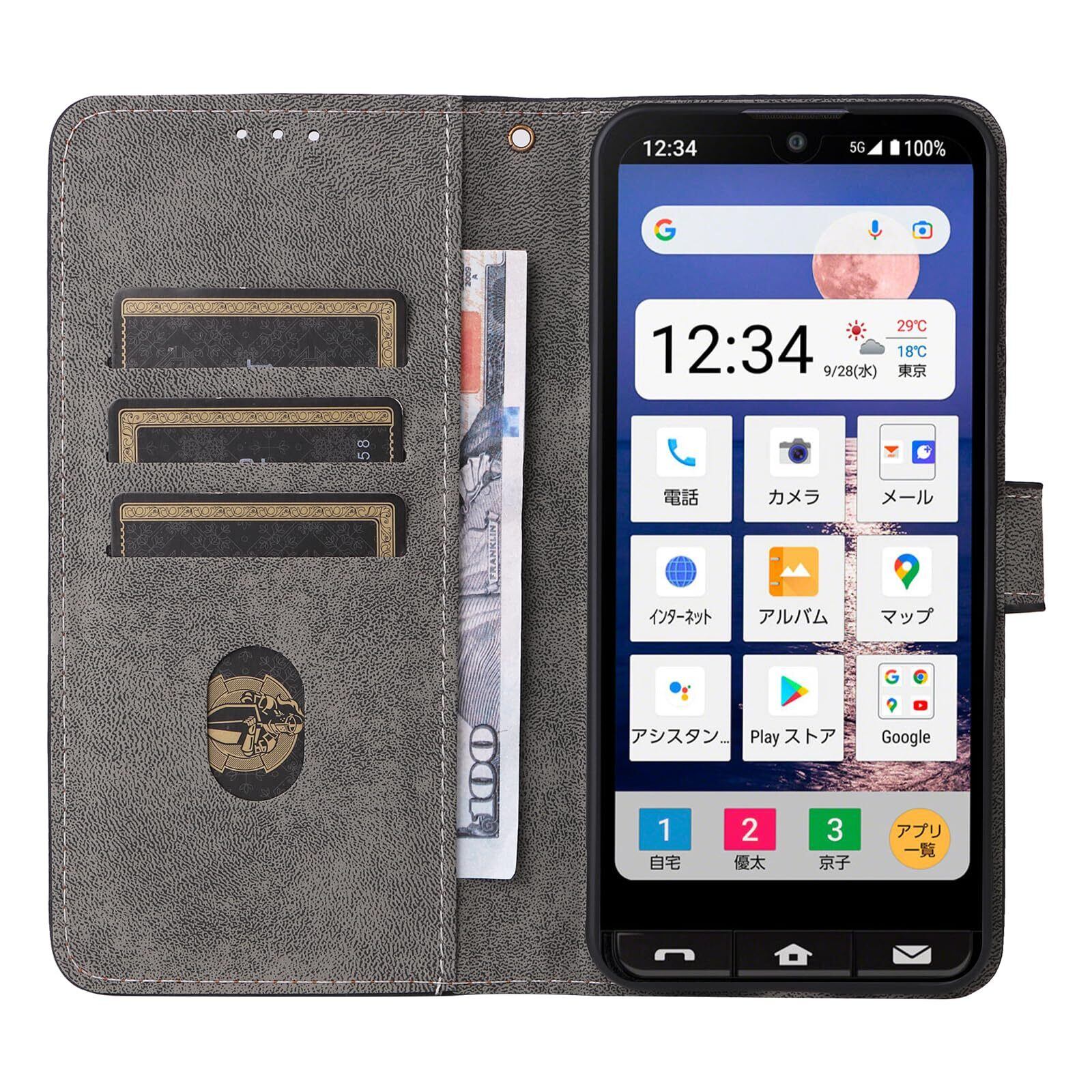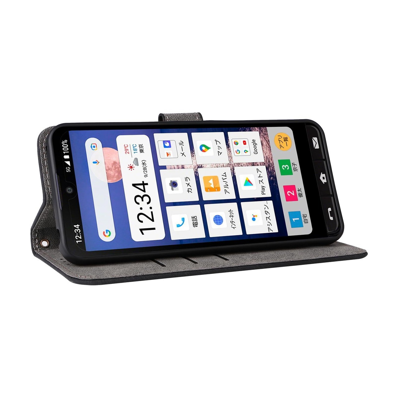Nutmeg Basio active SHG09/Basio active2 SHG12 ケース 手帳型 シンプルスマホ6/Simple Sumaho6 A201SH カバー 財布型 シンプルスマホ7 A404SH 携帯ケース 高級PUレザー 柔らかいTPU素材 全面保護 カード収納 スタンド機能 マグネット式 手触りが良い スマホケース 耐衝撃 耐摩擦(ブラック)