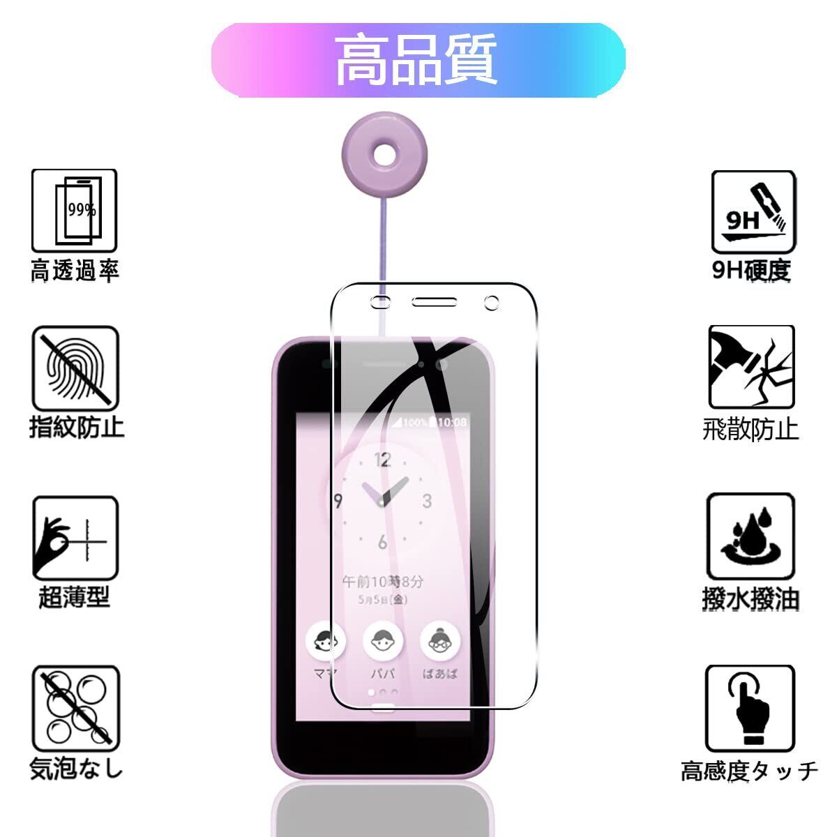 【9H硬度 飛散防止】 対応 キッズケータイ KY-41C ガラスフィルム はす旭硝子で作られており、スマホ保護フィルムの中で最高レベルの9H硬度に達しています。手にフィットして持ちやすく滑りにくいので落ちにくいです。万が一落ちてもフィルムが衝撃を吸収してくれるので、スクリーンの損傷を最低限まで抑えられます。また、特殊な飛散防止設計により、ガラスが割れても飛散しないため、安心してお使いいただけます。