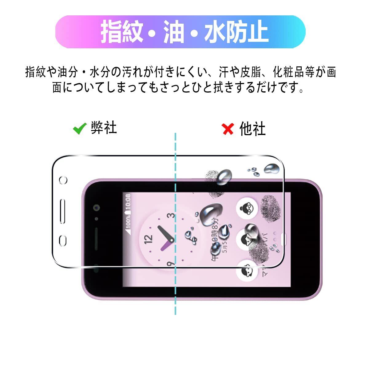 【指紋、油、水防止】ガラスフィルムの表面特殊な疎油処理されているため、画面感度に影響しなくて、簡単にタッチすることができ、指触りが抜群です。指紋や油分·水分の汚れが付きにくい、汗や皮脂、化粧品等が画面についてしまってもさっとひと拭きするだけです。