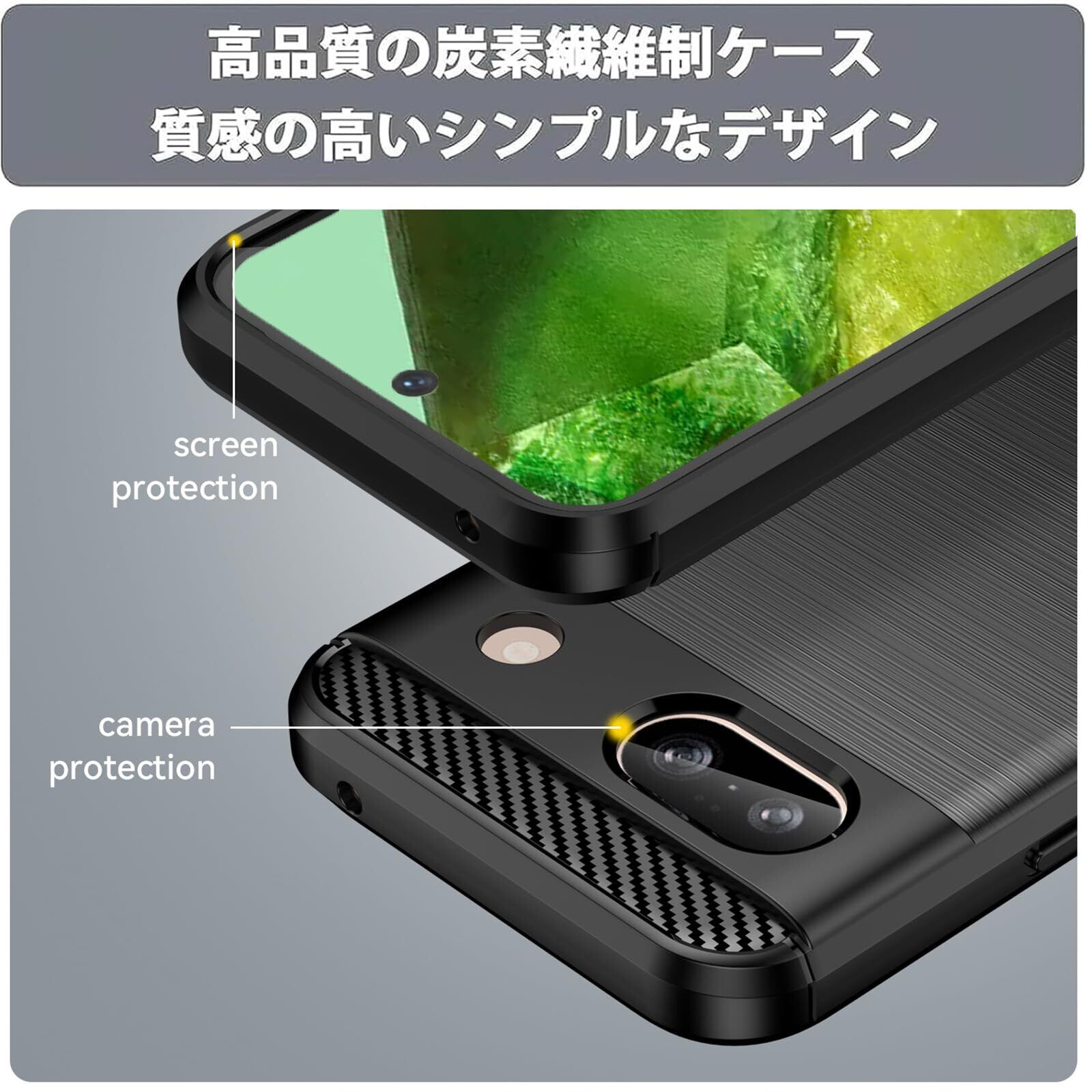 【2022最新】【UNEED】Pixel 8a 用の スマホケース ピクセル8A 用の ケース カバー ケース 炭素繊維カバー (素材/TPU) 指紋防止 滑り止め 薄型 軽量 耐衝撃 簡易脱着 ソフトケース カラー:黒