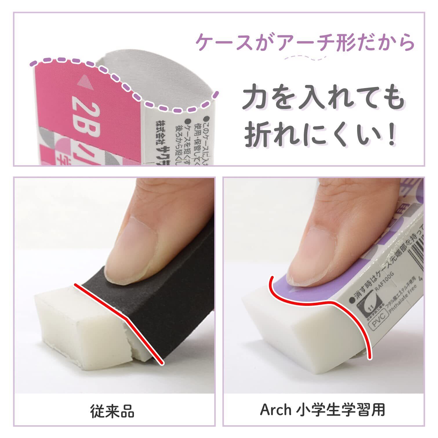 ・消しゴムが劇的に折れにくいアーチ形状のケース入り
