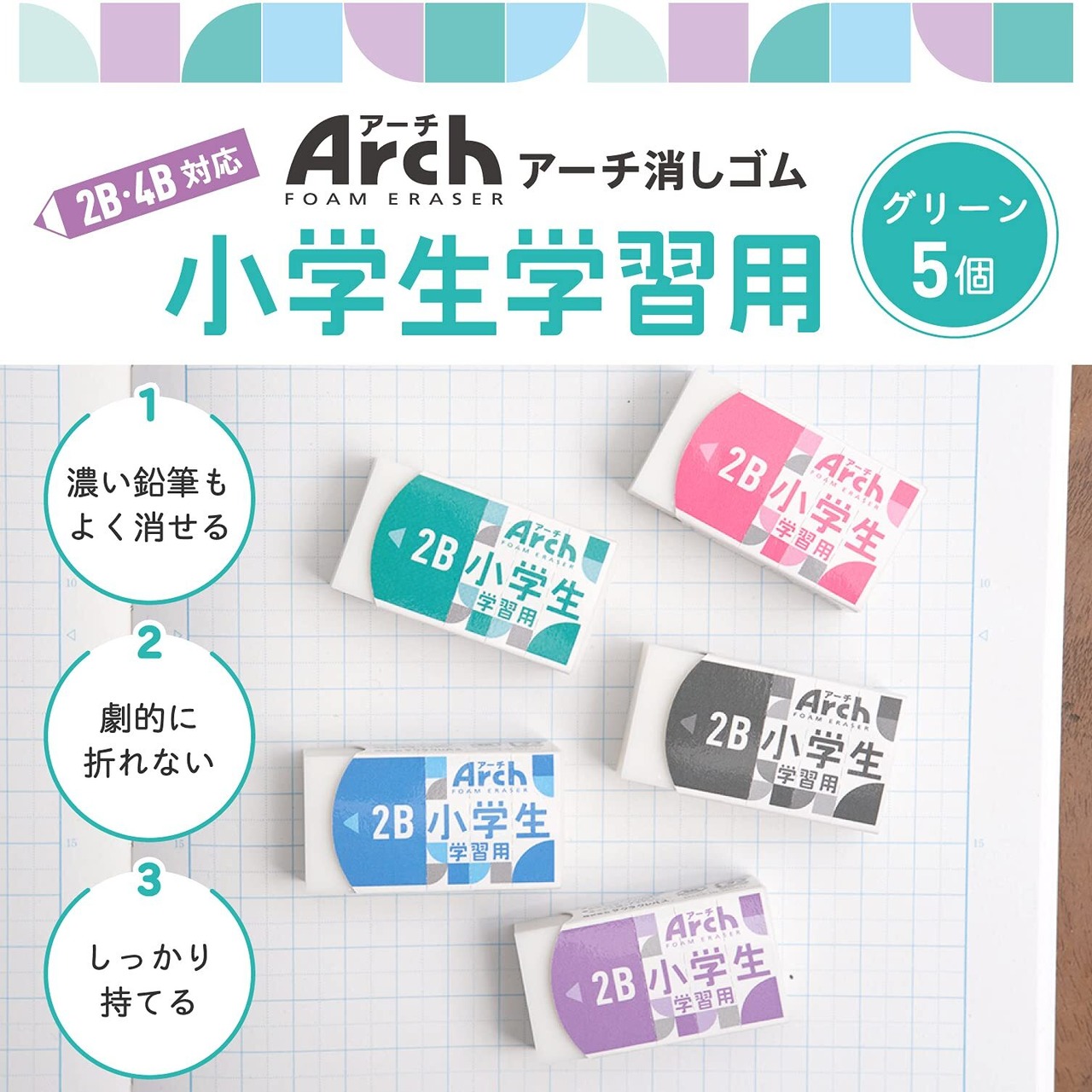 サクラクレパス 消しゴム アーチ 小学生 学習用 グリーン 5個 RAF100G-GR(5)