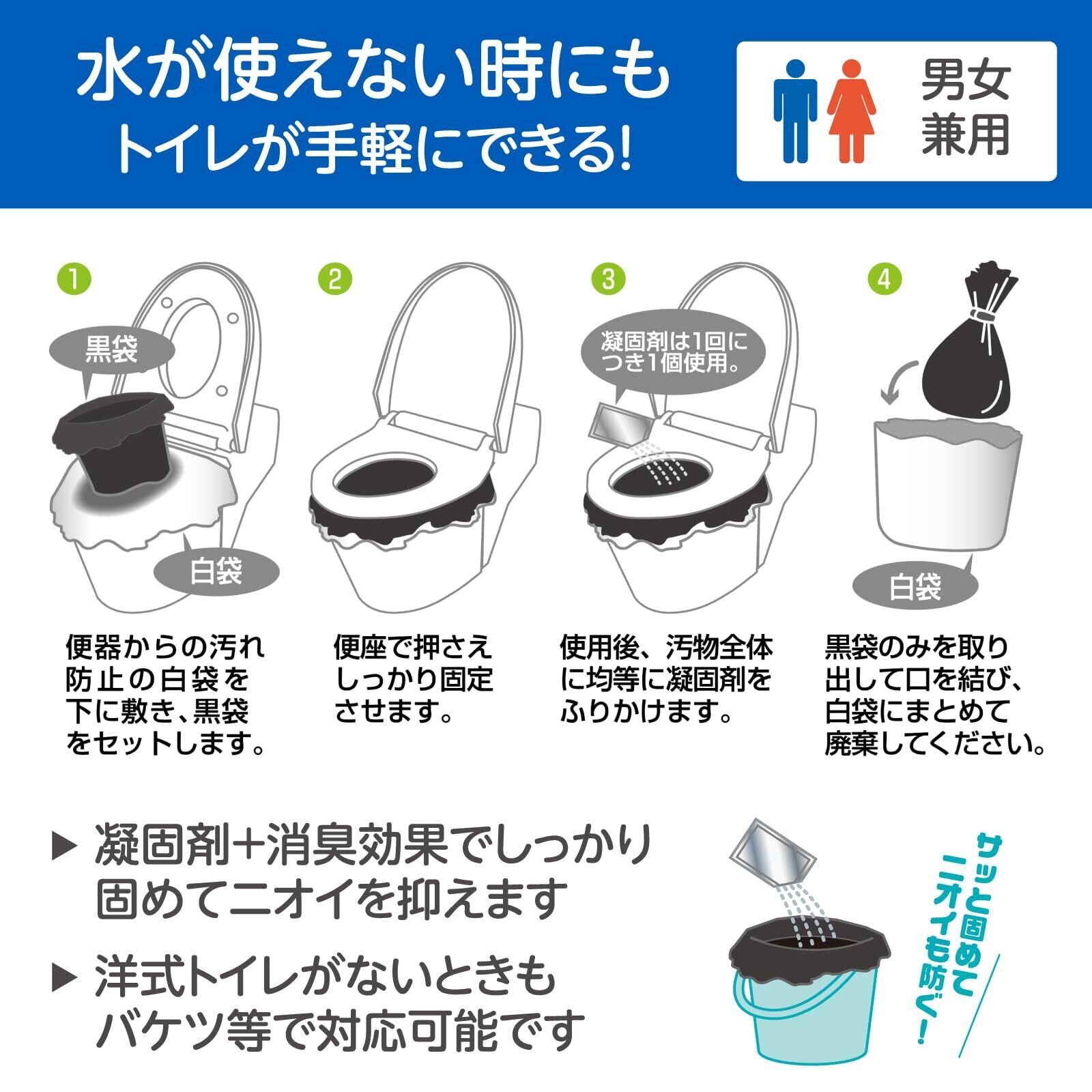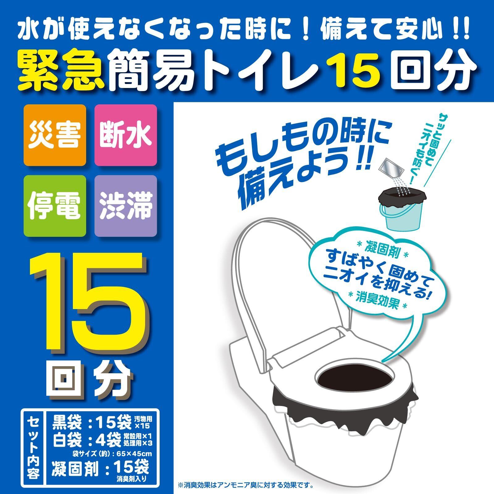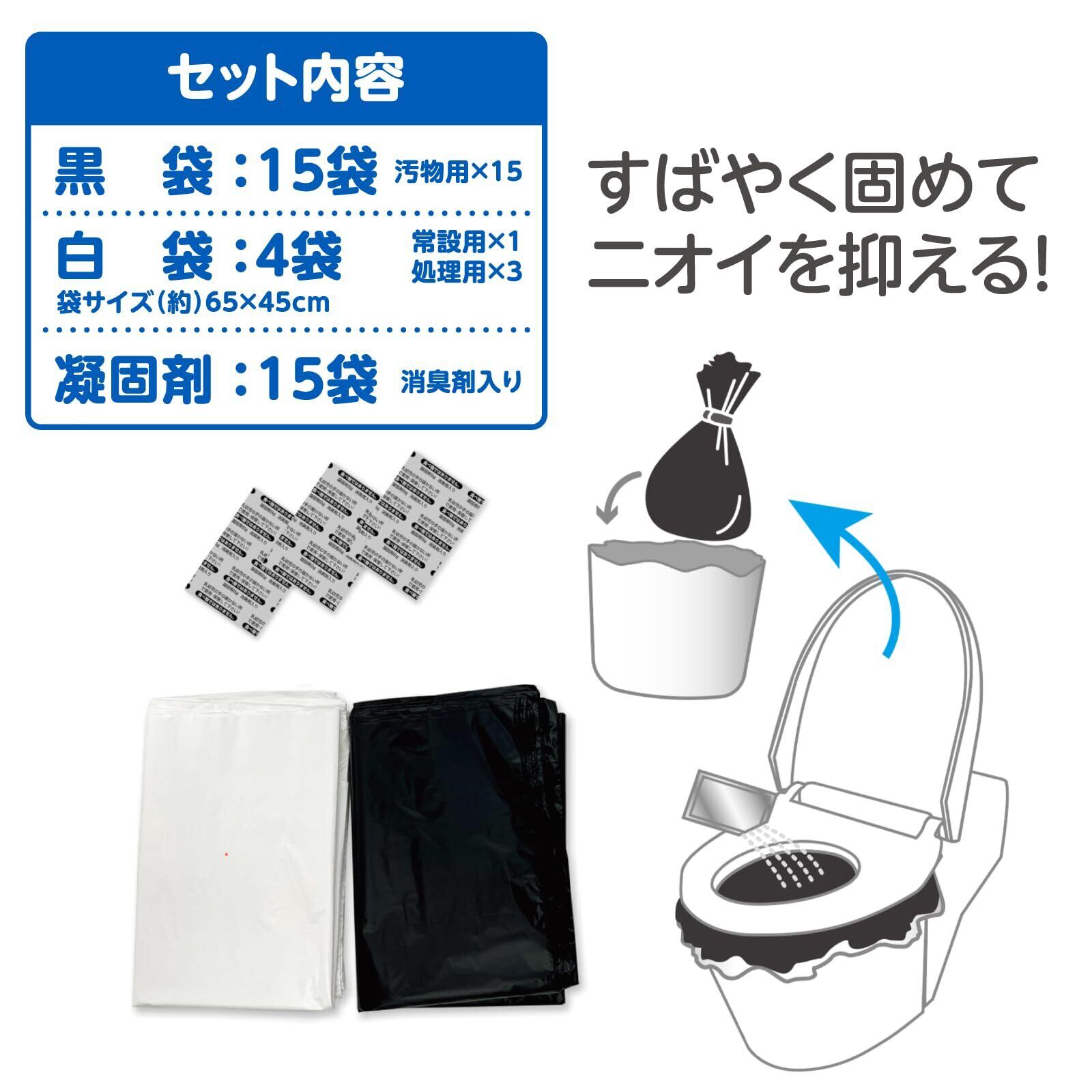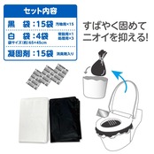 ●セット内容 : 凝固剤15個、汚物袋15枚、汚物処理袋3枚、トイレ常設用袋1枚