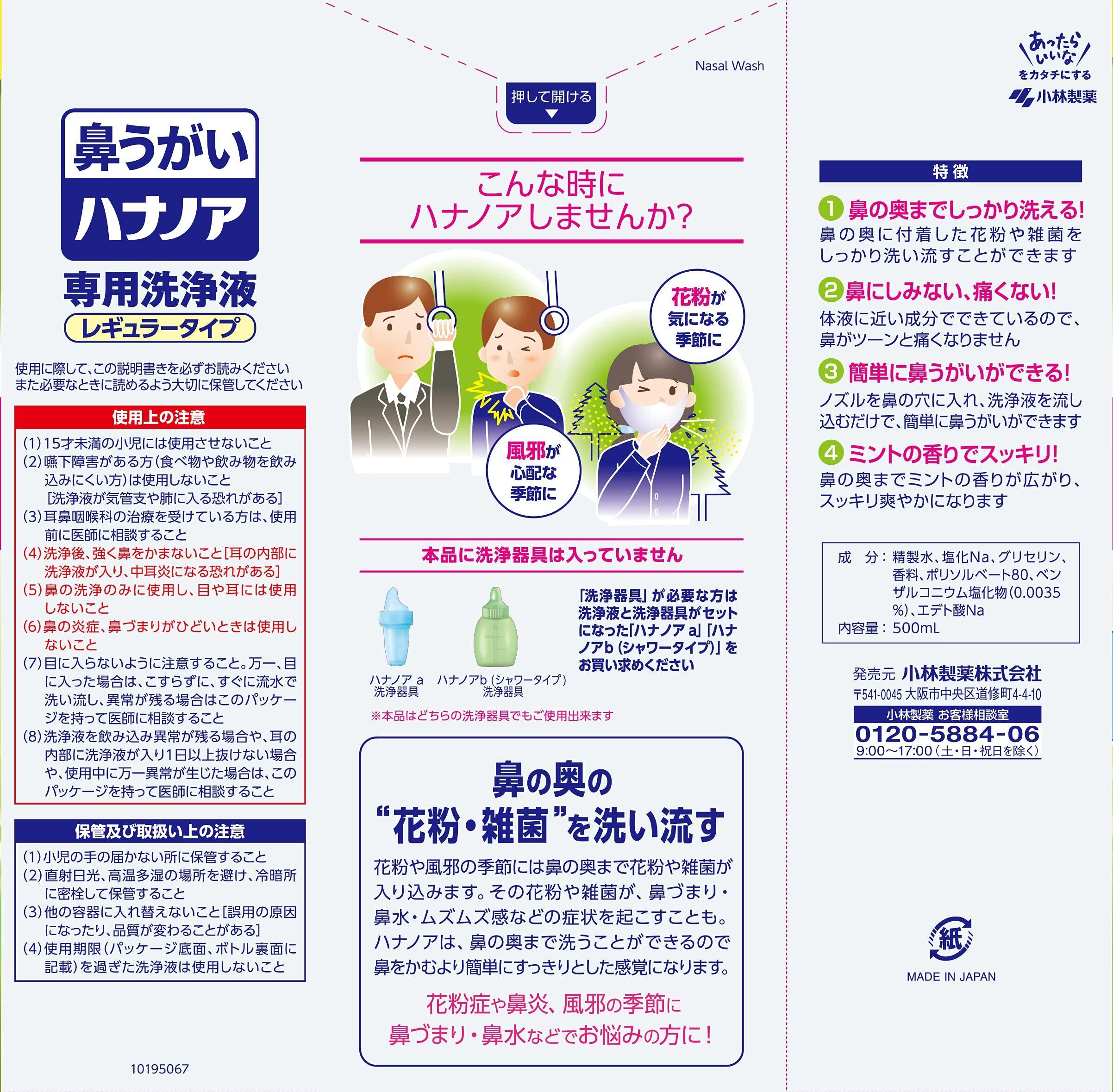 ハナノア 鼻うがい 専用洗浄液 レギュラータイプ 500ml(鼻洗浄器具なし)