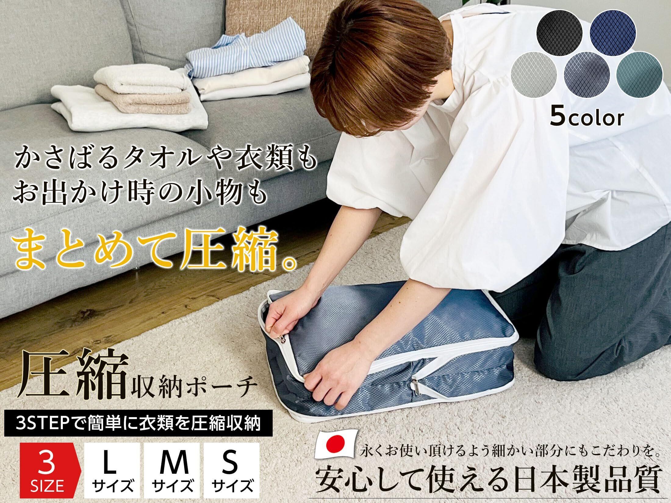 ■ 【3STEPだけで簡単圧縮!】衣類などをポーチに入れて、ファスナーを閉じていくだけで誰でも簡単に圧縮できます。