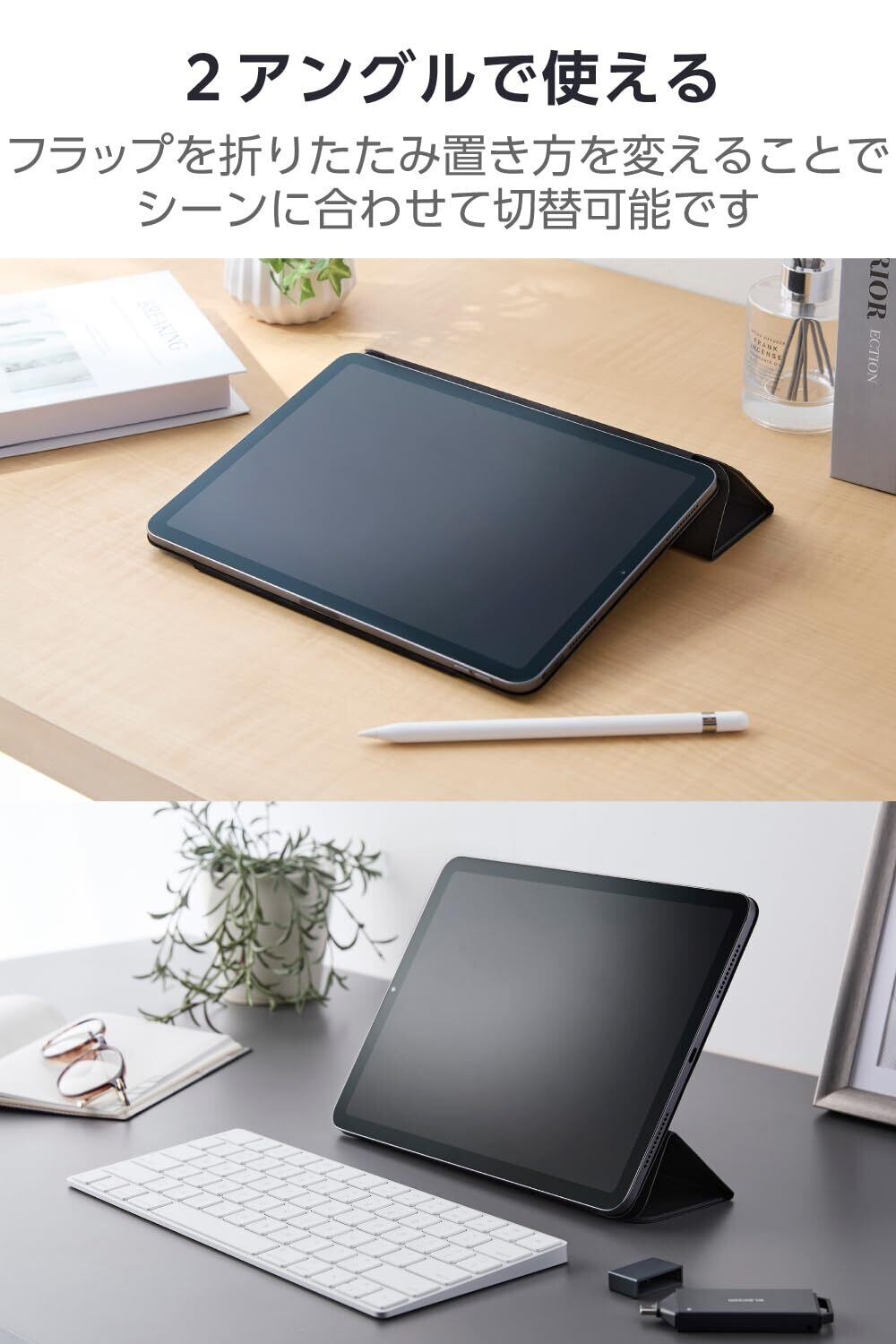 エレコム iPad Air 11インチ M2 (2024年) 10.9インチ 第5/4世代 (2022/2020年) 軽量 スリム マグネット吸着 2つの角度調節可能 Apple Pencil収納時ペアリング・ワイヤレス充電対応 オートスリープ/ウェイク対応 ブラック TBWA20MWVPFBKN