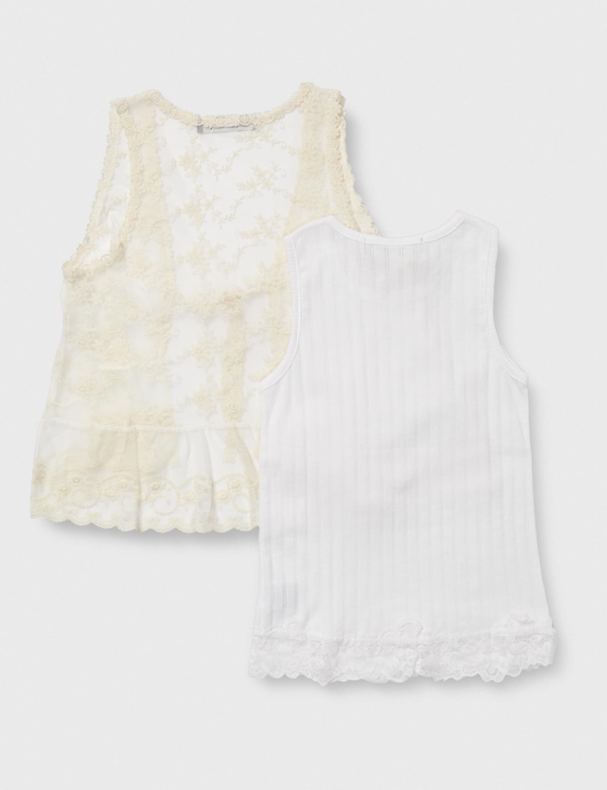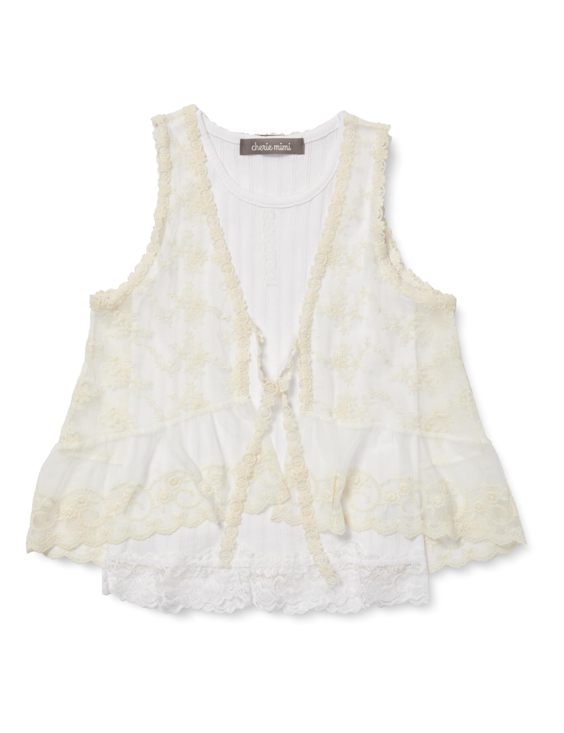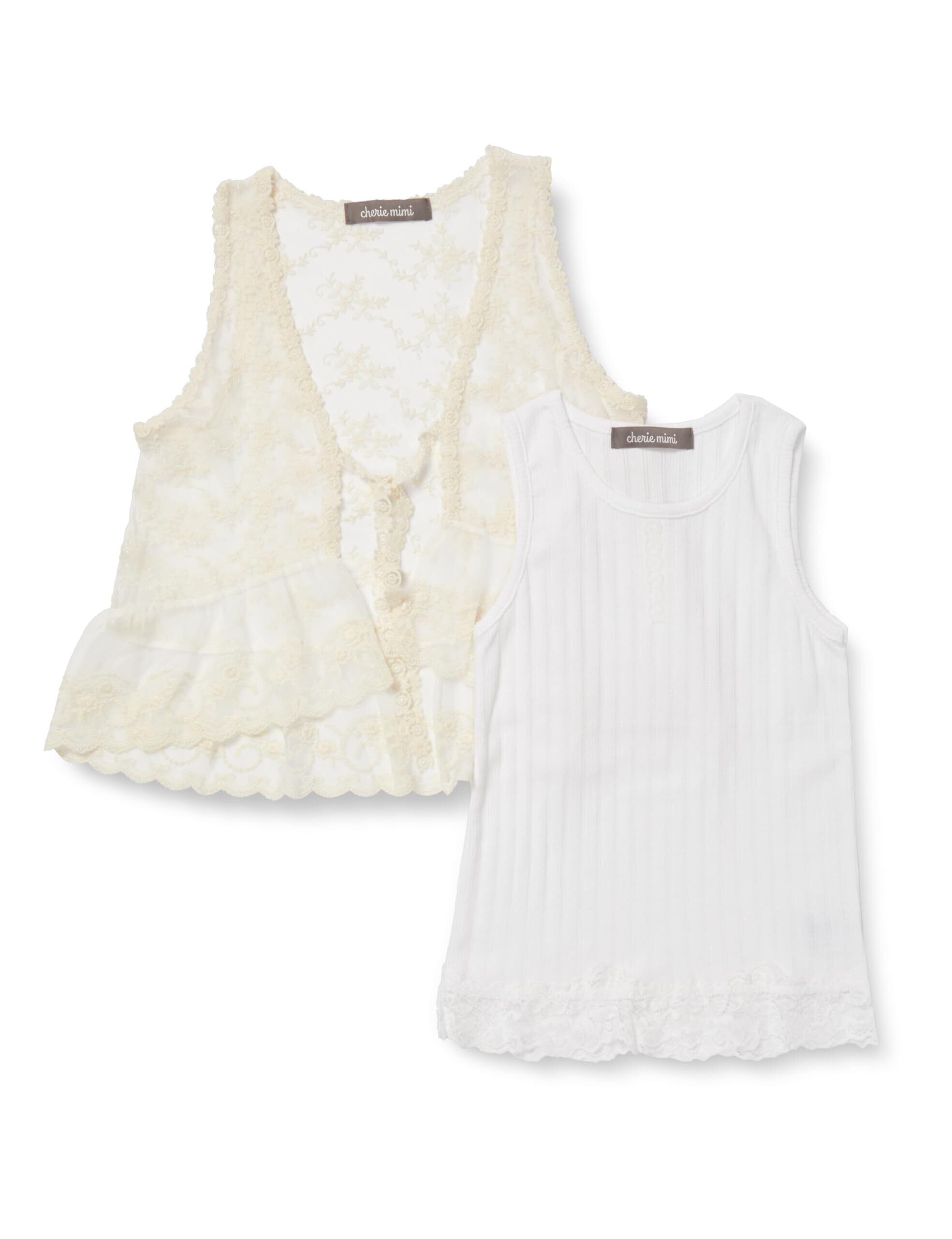 [シェリーミミ] アンサンブル 韓国子供服 2点セット リブタンクトップとレースベストのセット ガールズ