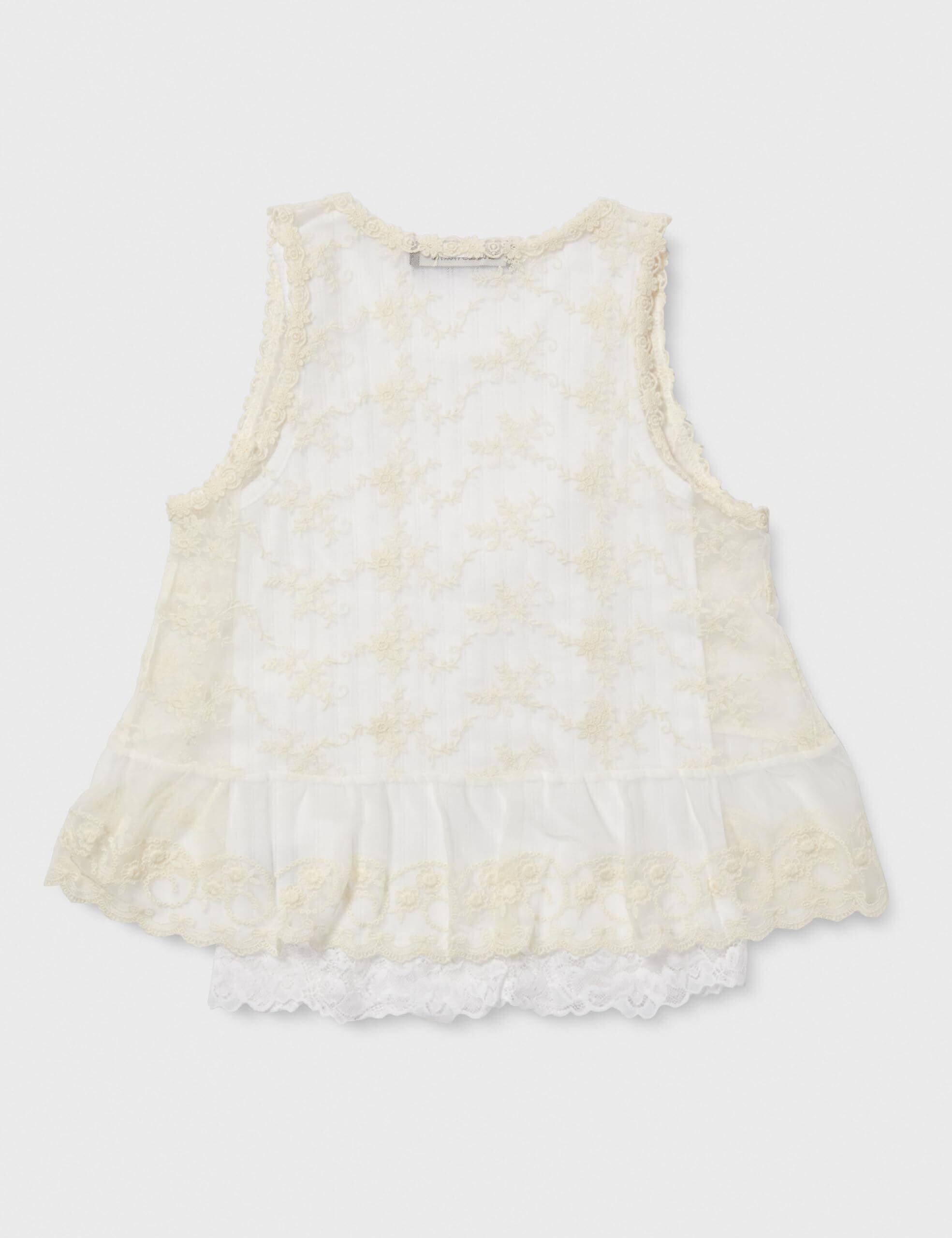 レースベストとタンクトップのセット商品です。タンクトップも裾にレースがついていて、とてもかわいいタンクトップになっています。バラバラにしても着れるので、お手持ちのTシャツにレースベストをあわせて着ることもできます。