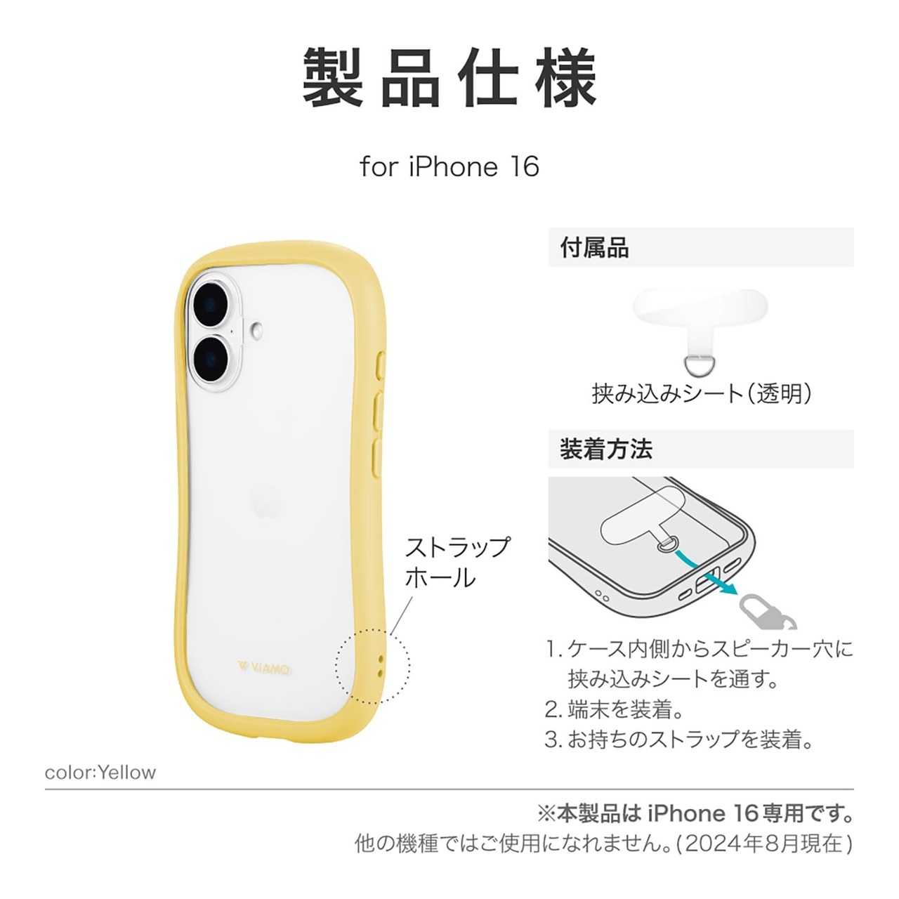 LEPLUS ルプラス iPhone 16 耐傷・耐衝撃ハイブリッドケース 「ViAMO freely」 イエロー LN-IM24VMFYE