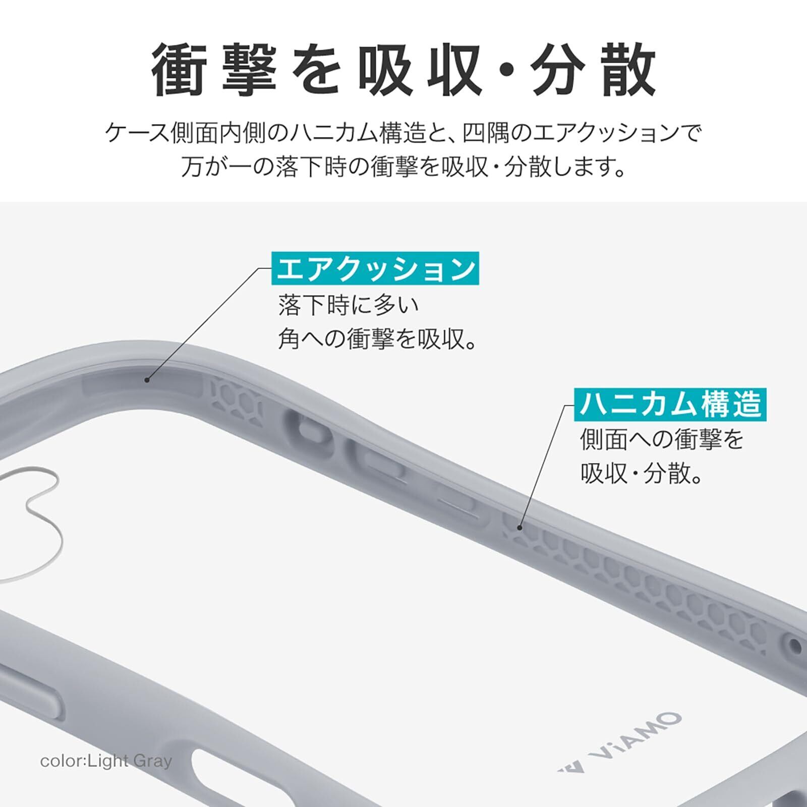 【60日間】【耐衝撃】 衝撃を吸収・分散するハニカム構造のTPUと、高硬度10Hで傷に強いガラスのハイブリッドケース/側面全体がなめらかにラウンドした持ちやすいデザイン/レンズ周りを高く設計/ボタンまで保護/ストラップホール搭載(側面)/写真やステッカーを使ったアレンジも楽しめる背面クリア仕様/ショルダーストラップの取り付けに最適な「挟み込みシート」付属