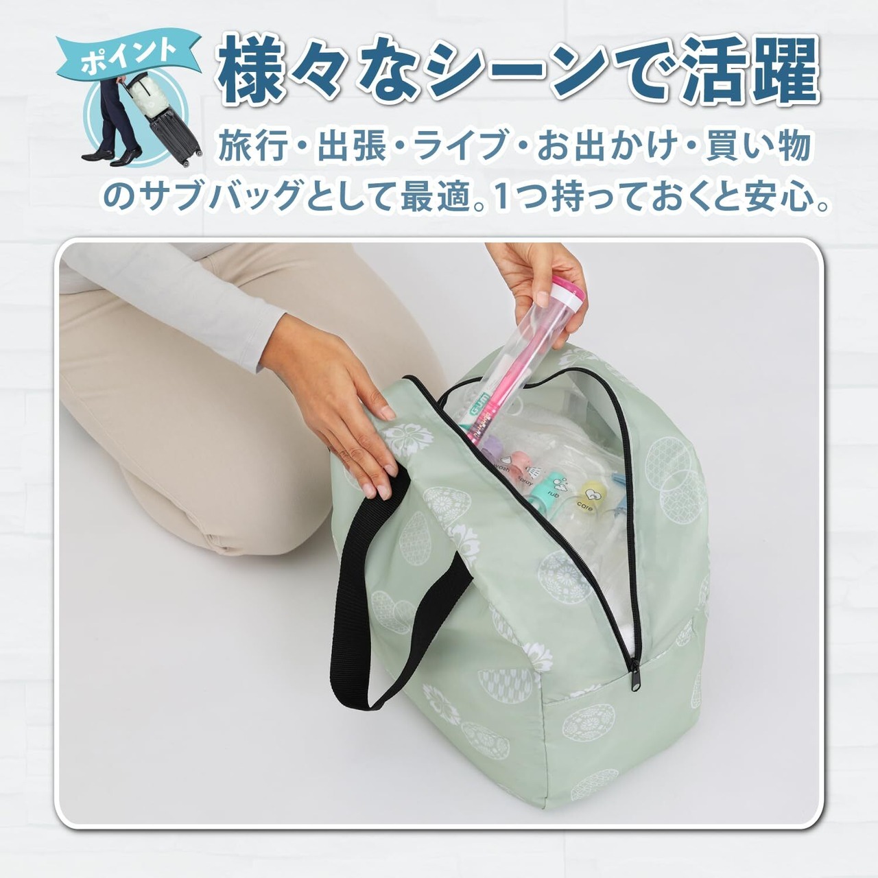 ●旅行や出張時のお土産の収納やお出かけ、お買い物の際のサブバッグとしても。
