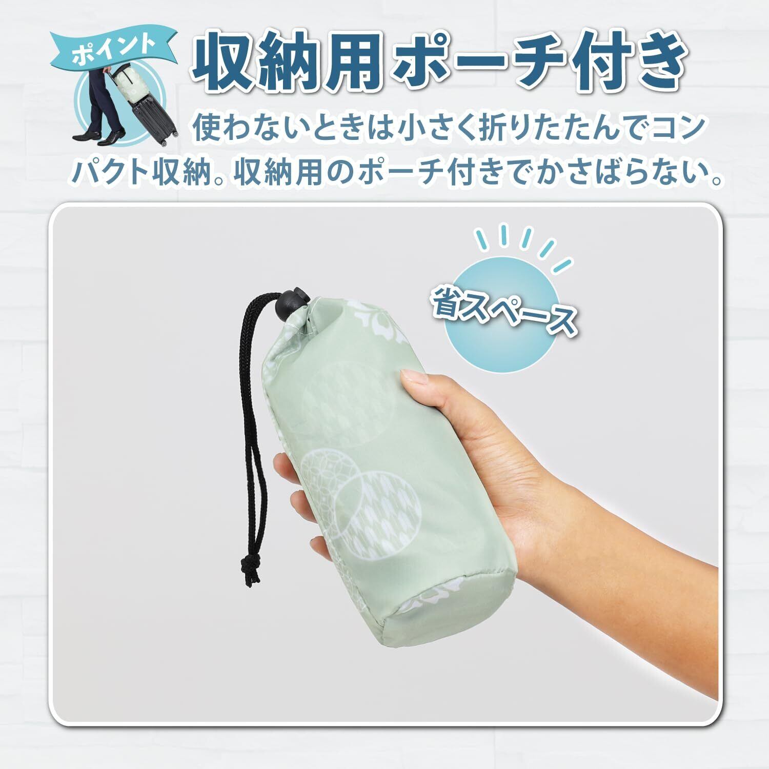 【収納袋付きで小さく折りたたんで持ち運べる】:収納袋付きで使わないときは折りたためてコンパクトになるのでかさばらない。