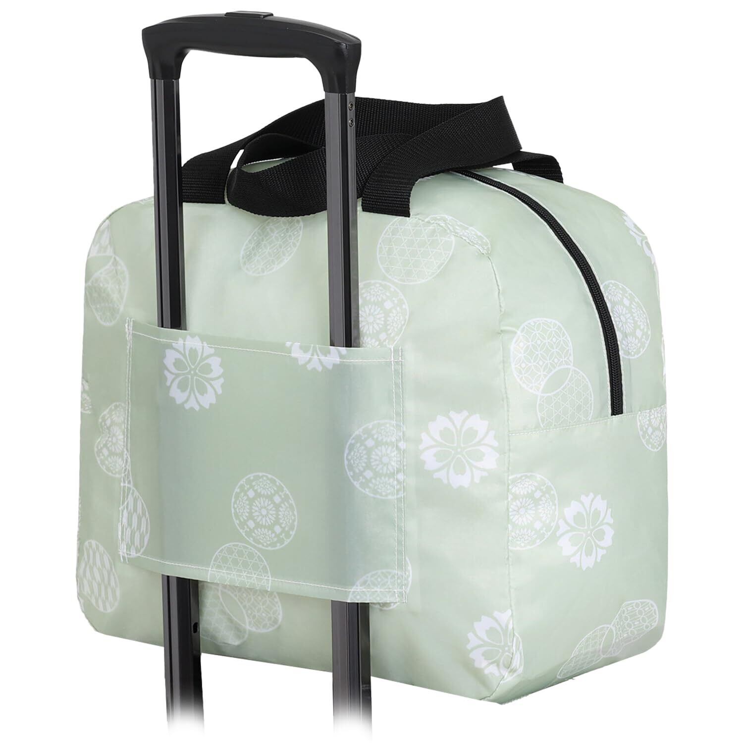 【在庫処分】アストロ キャリーオンバッグ ライトグリーン 和モダン柄 容量20L 撥水加工で水をはじく スーツケース キャリーケース バー通し穴付き ボストンバッグ トートバッグ 小さく折りたためる コンパクトになる エコバッグ サブバッグ ポリエステル製 収納袋付き 607-60
