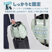 ●バッグ背面に通し穴付きでスーツケースのバーに通してバッグを固定できる。