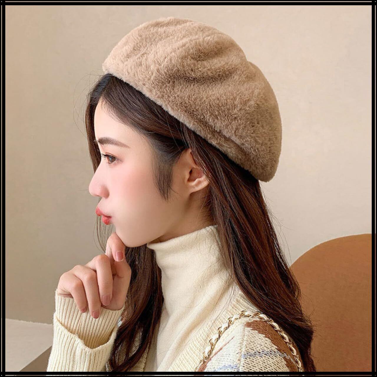 ふわふわでもこもこな素材に無地のシンプルなデザインが特徴的な レディース カジュアル デザイン ベレー帽。