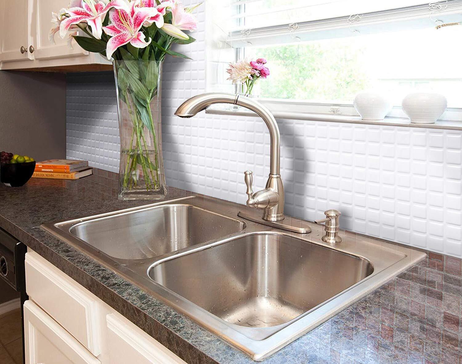 APSOONSELL 3D モザイクタイルシール 【4枚】キッチン 壁紙 タイルシート 耐熱 防水 洗面所 トイレ ウォールステッカー DIY 壁紙シール 賃貸 簡単取付 KBMS-39W