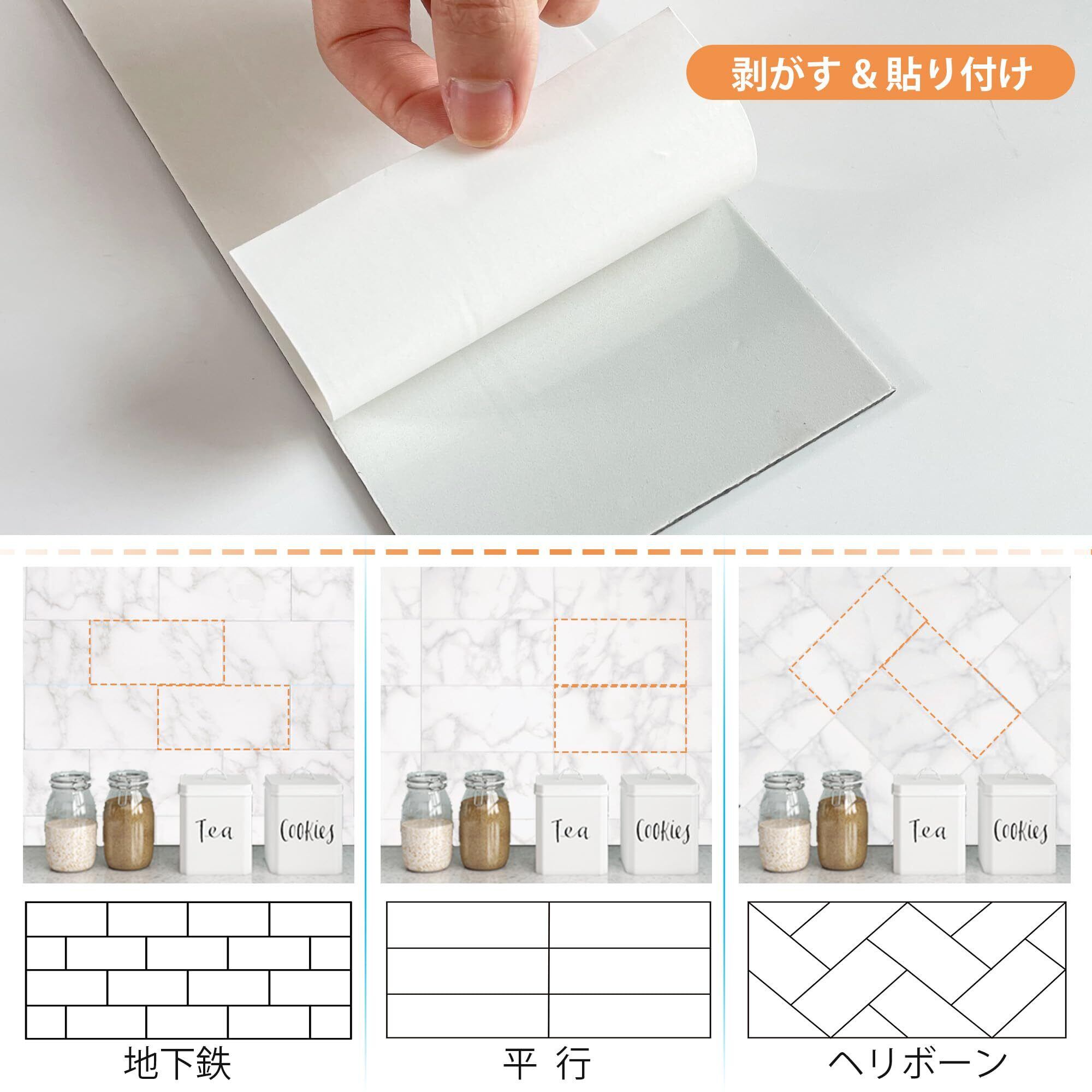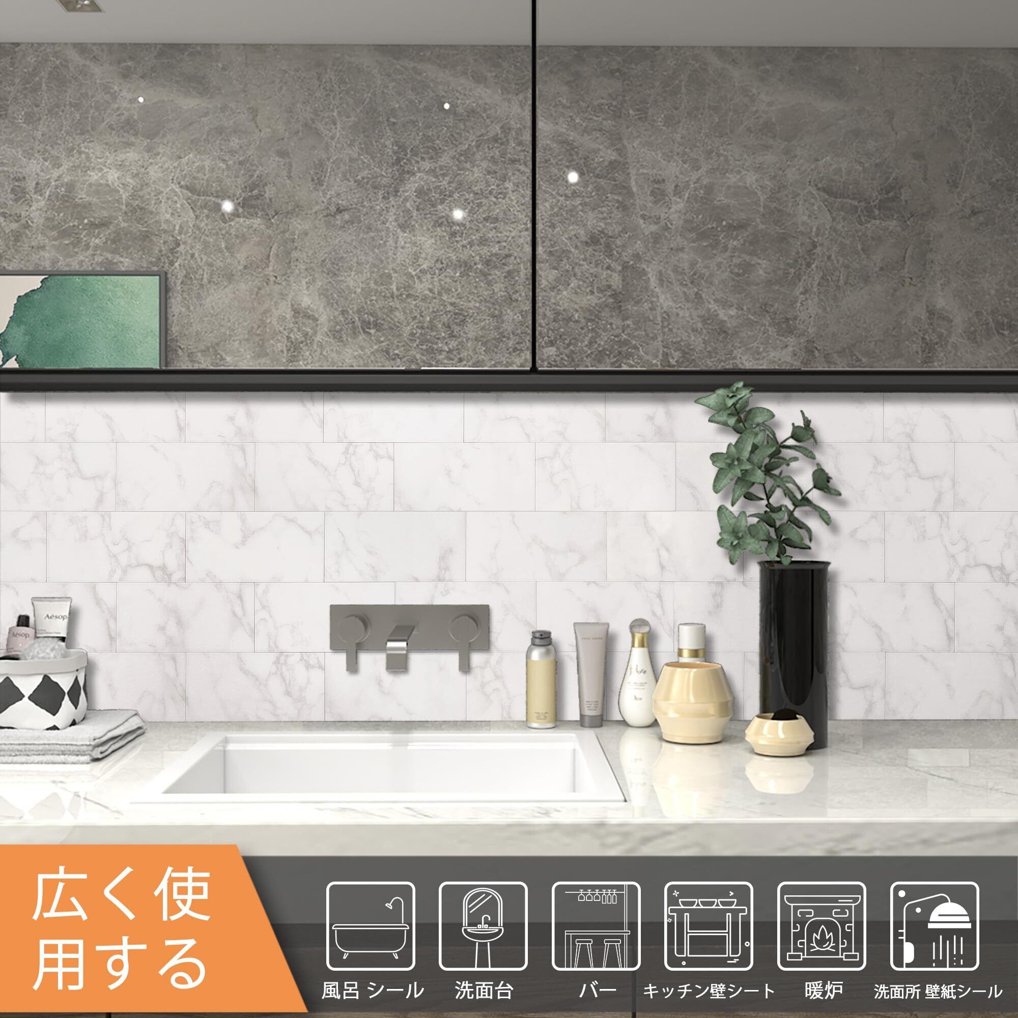 おすすめの施工場所 大理石調 タイルシール:お好きな箇所に貼って、楽しくDIYでデコレーションへ。玄関・リビング・トイレ・キッチンなどの室内壁,棚やテーブルなどの装飾。粘着力が強く,ガラス、タイルなど滑らかな平面であれば、既存の壁の上から簡単に貼れます
