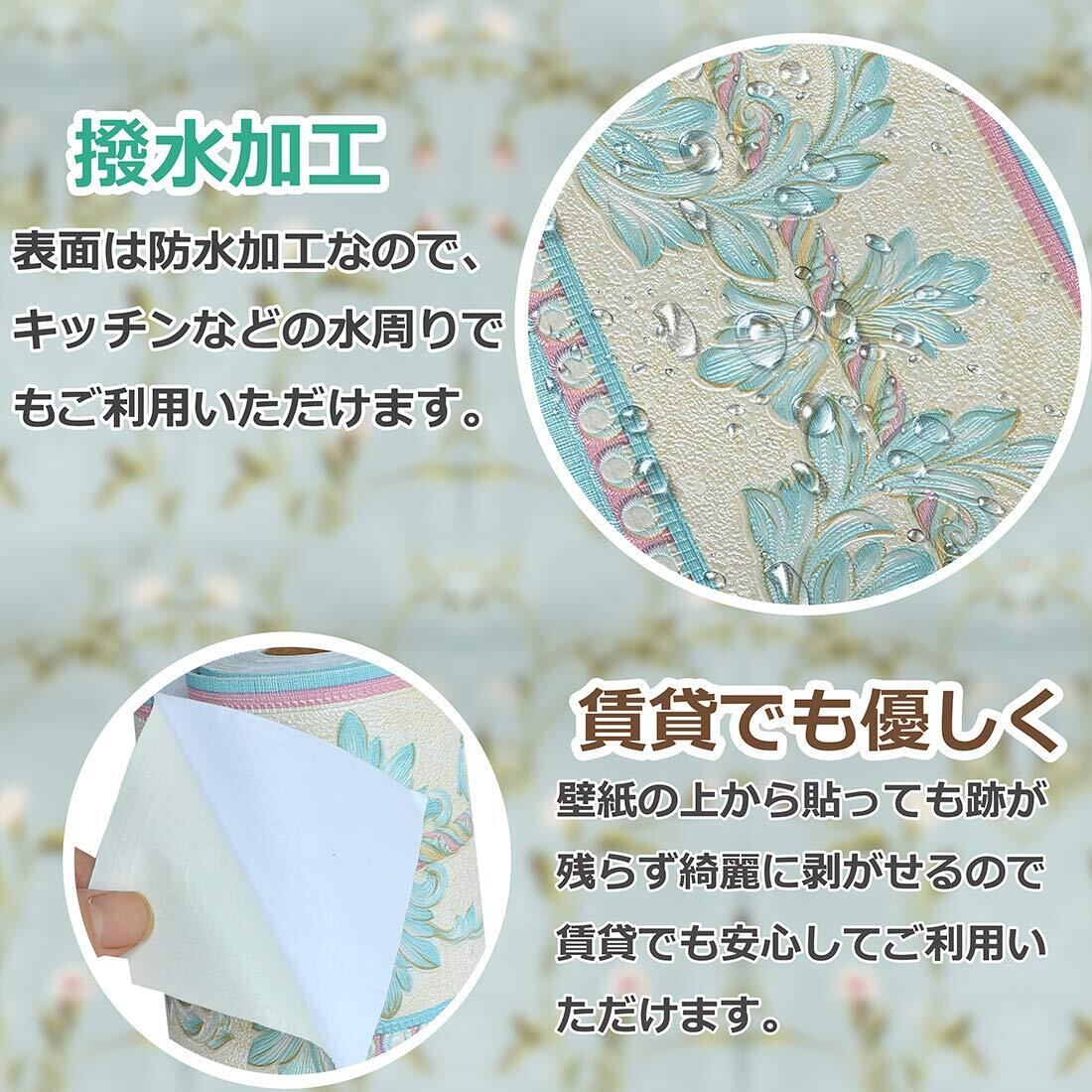 【 立体感あふれる高機能素材! 】この壁紙シールは、浮彫の凹凸が魅力的で、立体的な印象を与えます。防水性に優れているため、水回りでも安心して使用でき、お手入れも簡単。汚れが気になる箇所でも、濡れタオルでサッと拭き取ることができます。耐久性が高く、長期間美しい状態をキープできます。