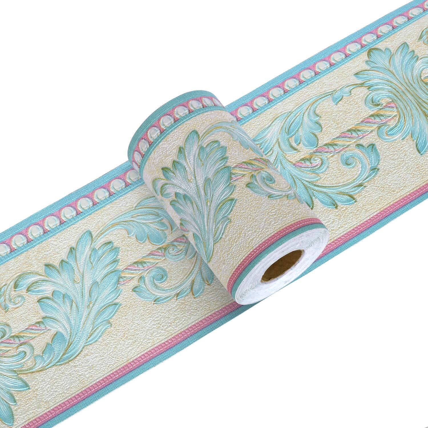 Yoillione トリムボーダー マスキングテープ 壁紙シール インテリアシール ブルー はがせる 浮彫 凹凸 藤花 リメイクシート キッチンシール 北欧 防水 ウォールステッカー 花 3d 大きい 立体 トイレ 洗面所 リビング 玄関 【青 幅10cm×長5m】タイプD