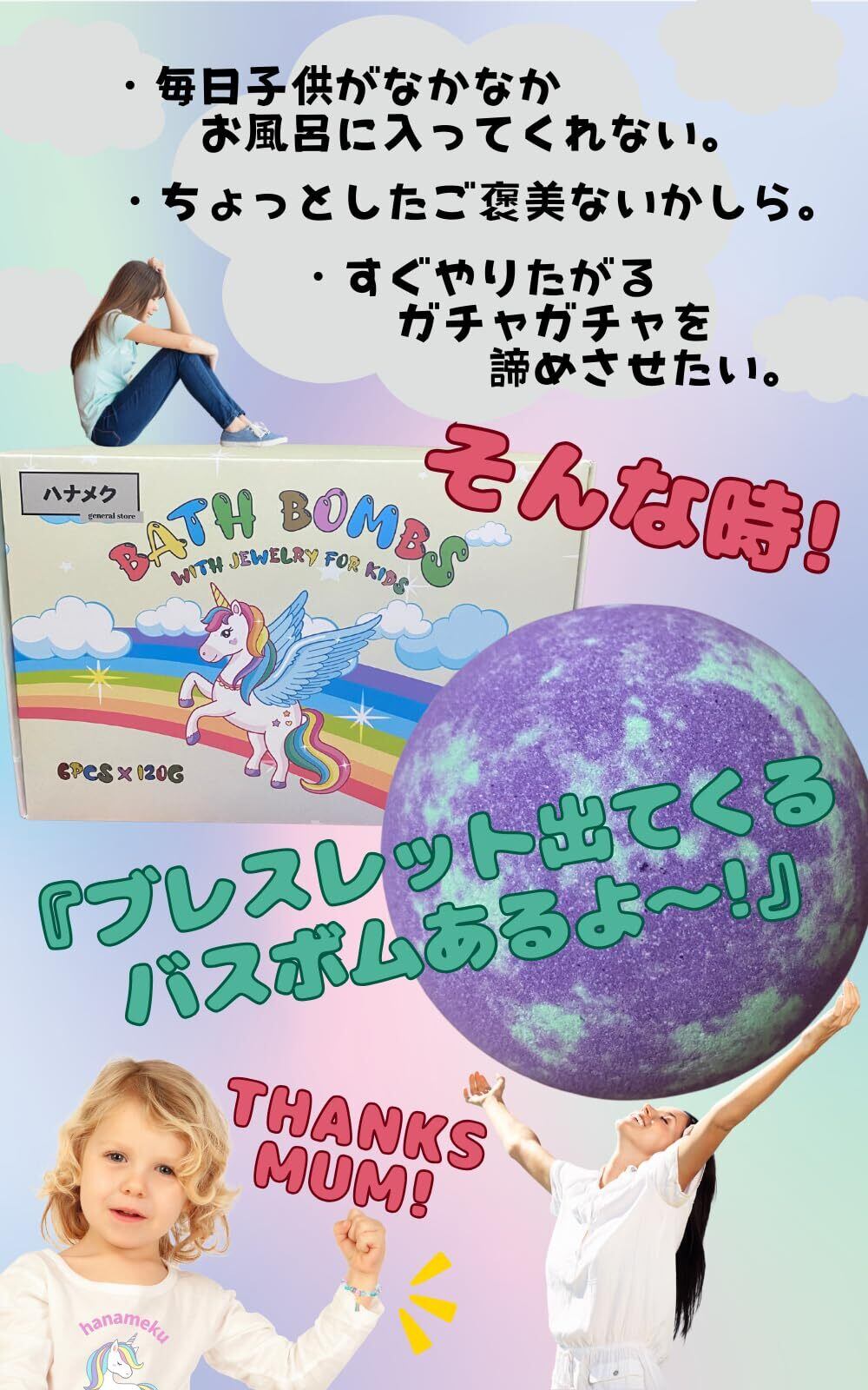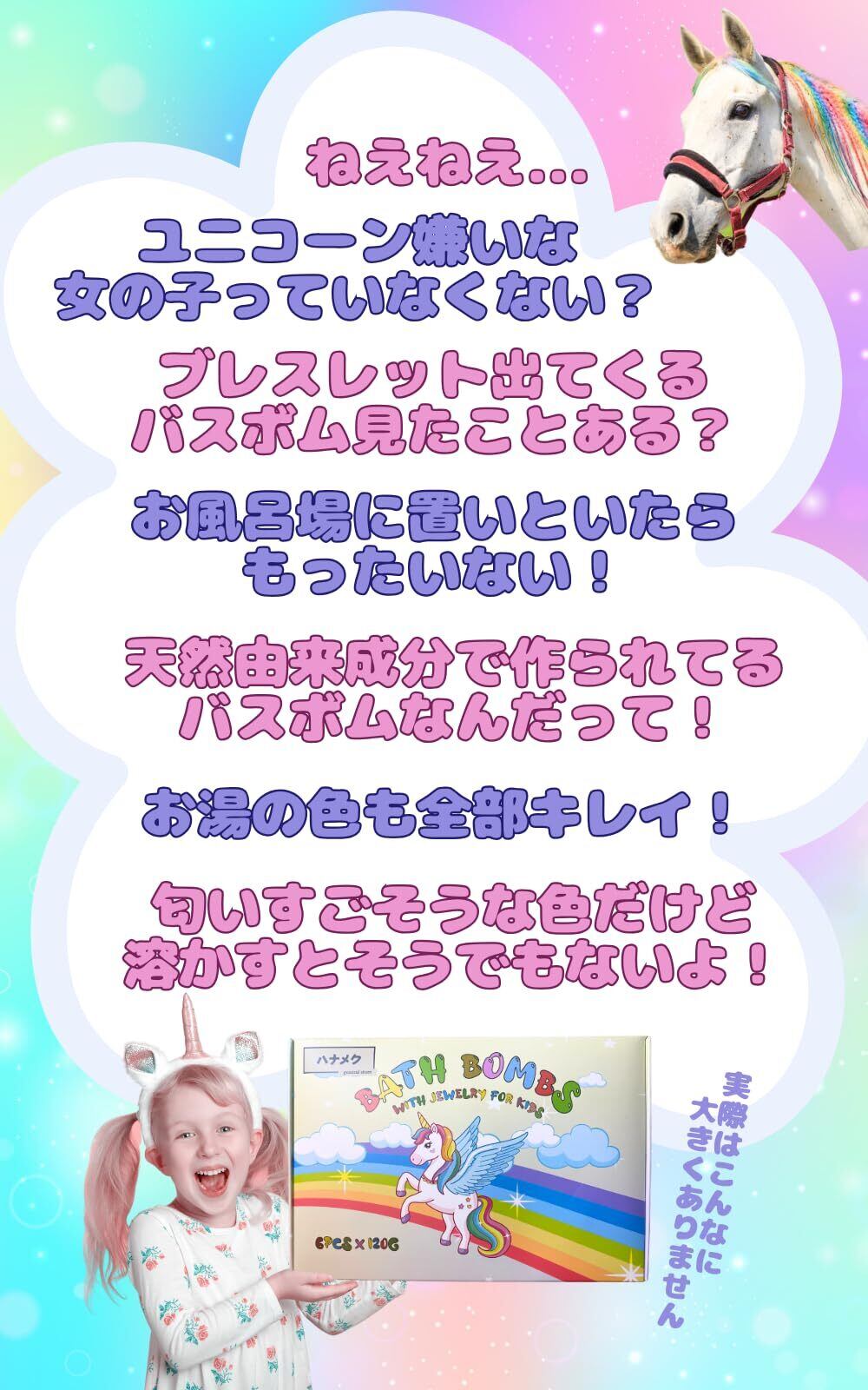 【 特別なギフトにぴったり! 】誕生日やクリスマス、ちょっとしたお祝いにも最適なギフトセットです。ユニコーンの可愛らしさは、男の子も女の子も大喜びのため、特別なサプライズを演出します。友達や家族と一緒にバスタイムを楽しむ素晴らしい時間を共有できます。