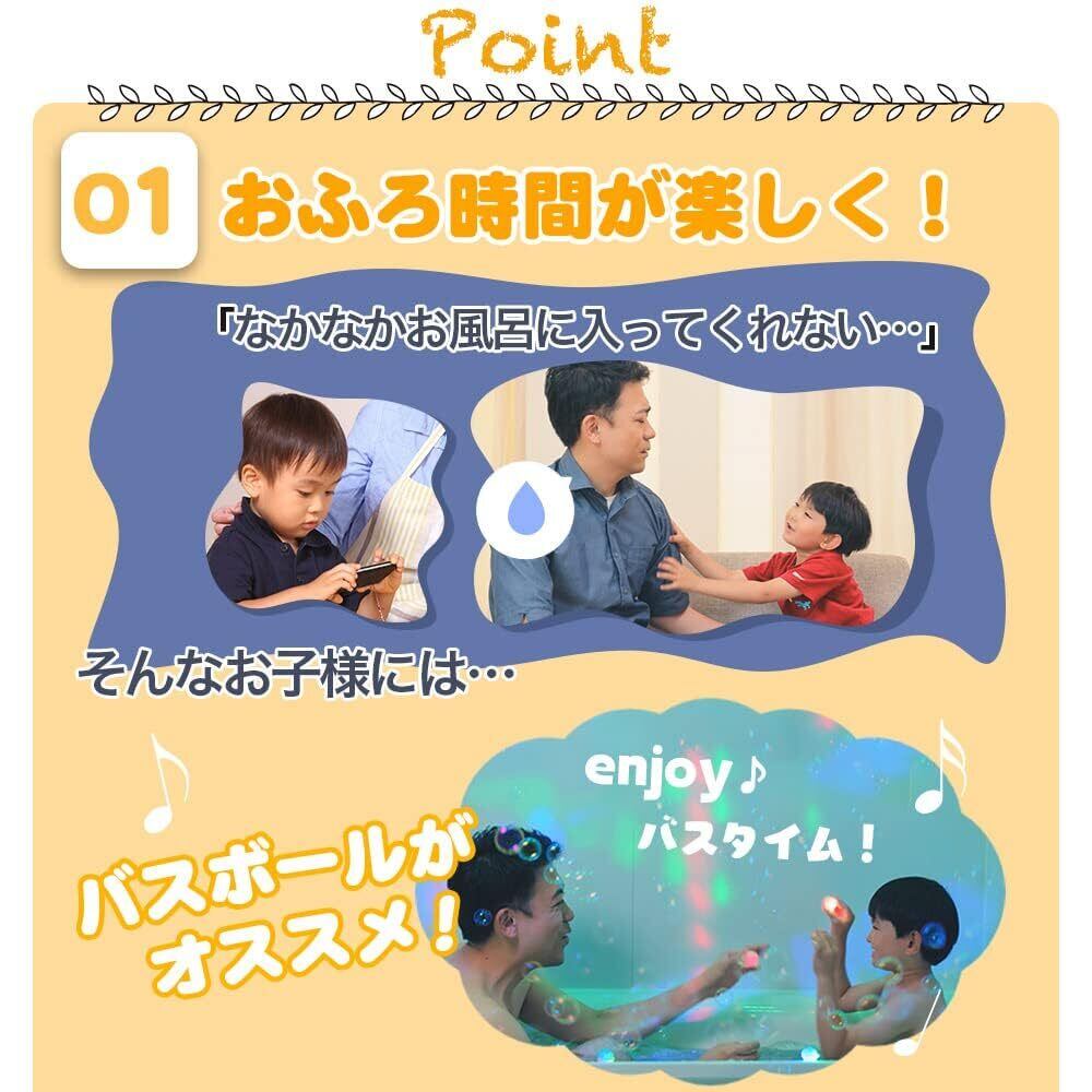 【 入浴する楽しみが倍増! 】このバスボールは、ただ溶けるだけではありません。お湯に入れると、目を引く光が放たれ、まるでお風呂が特別な世界に変わったかのような体験を提供します。お子様が入浴を楽しむ時間が、より特別なひとときに変わること間違いなし!お友達や兄弟姉妹と一緒に、ワクワクするお風呂タイムを楽しみましょう。