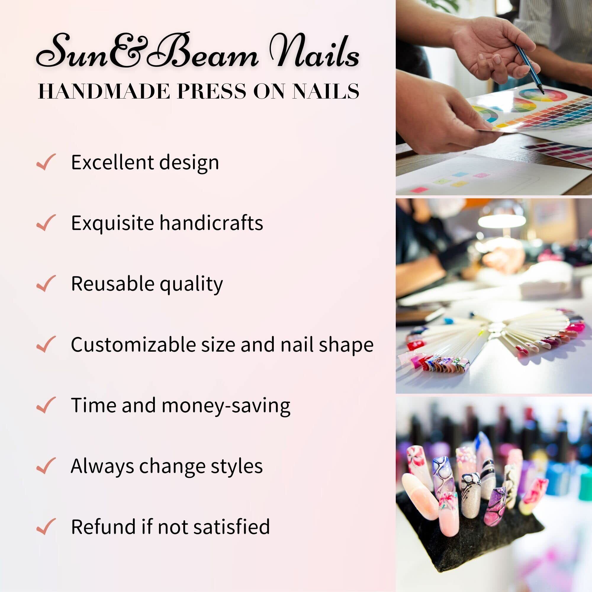 「【在庫セール】Sun&Beam Nails 手作りネイルチップ」で、圧巻の指先美を手に入れてみませんか?数量限定のため、お早めのご注文をお待ちしております!