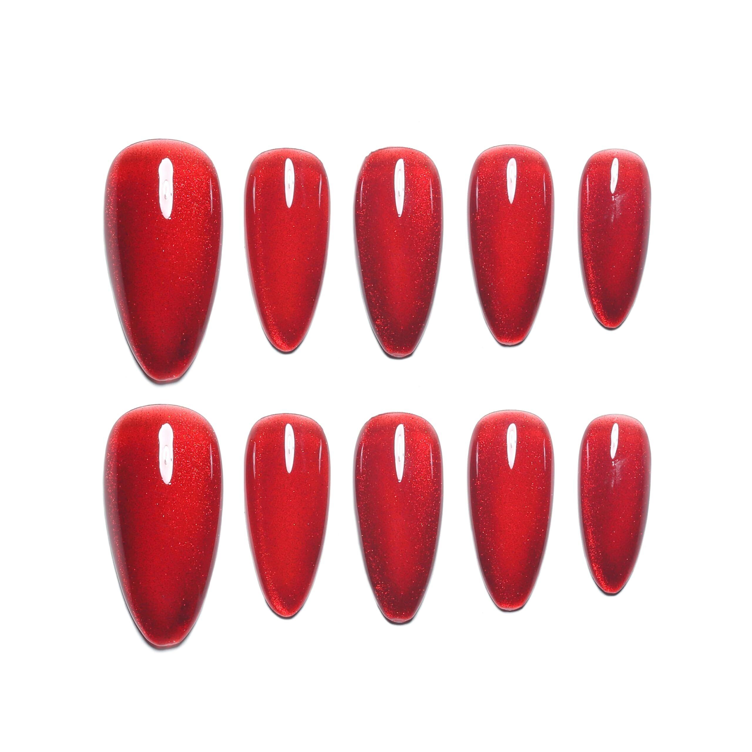 Sun&Beam Nails 手作りネイルチップ ミディアム アーモンド レッド ルビー ほうせき つけ爪 マグネット デザイン おしゃれ 付け爪 10枚入 (#162 S)