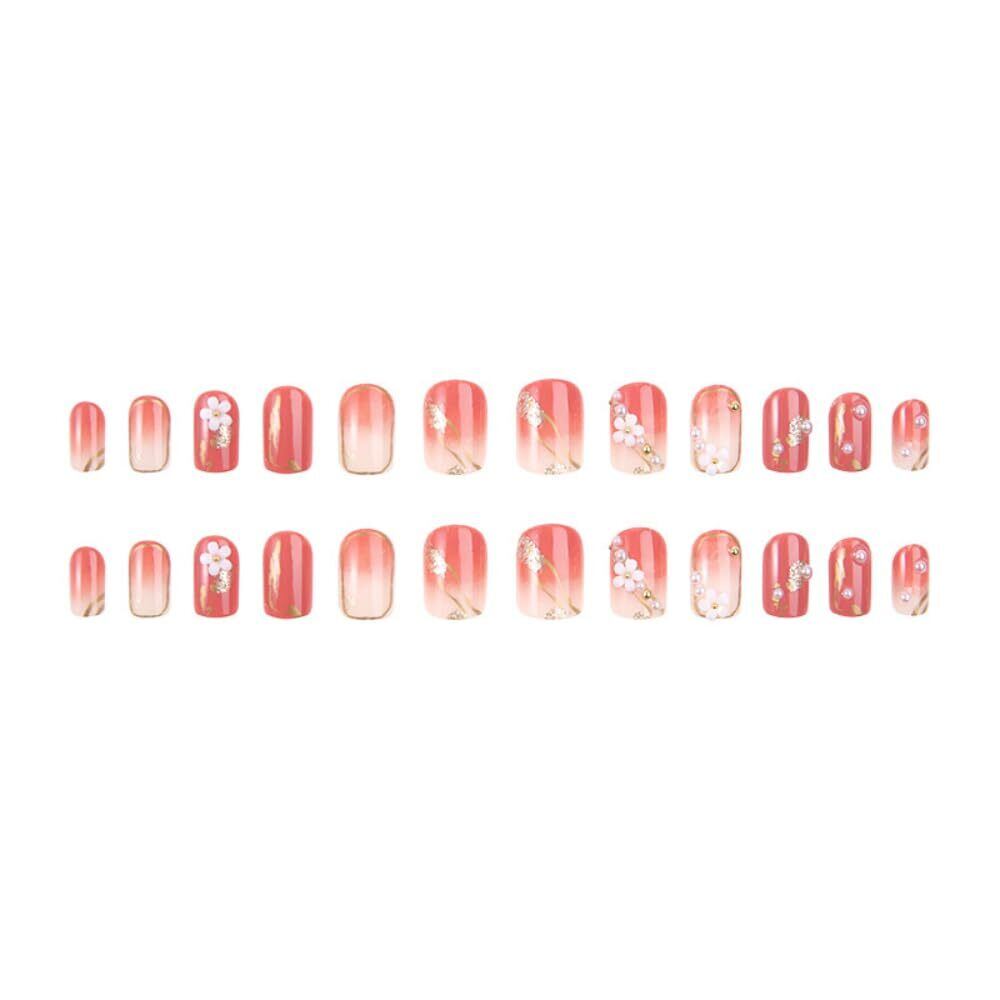 つけ爪 3D ネイルチップ ネイルアートパッチ ネイルチップ 24枚入 手作りネイルチップ つけ爪 ネイルチップ 結婚式 花嫁ネイル 和風 光沢 つけ爪 (A)