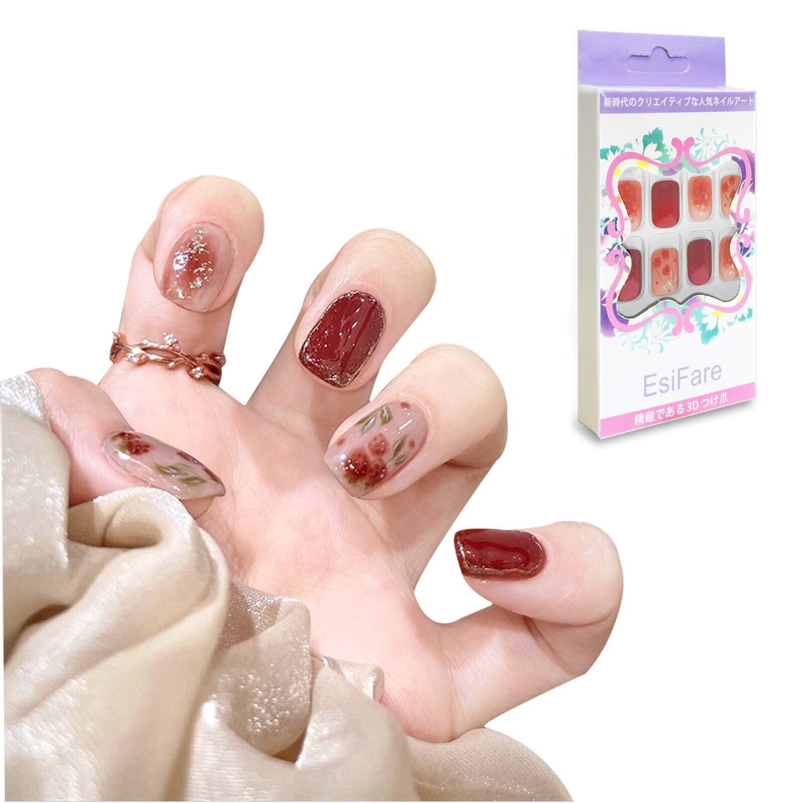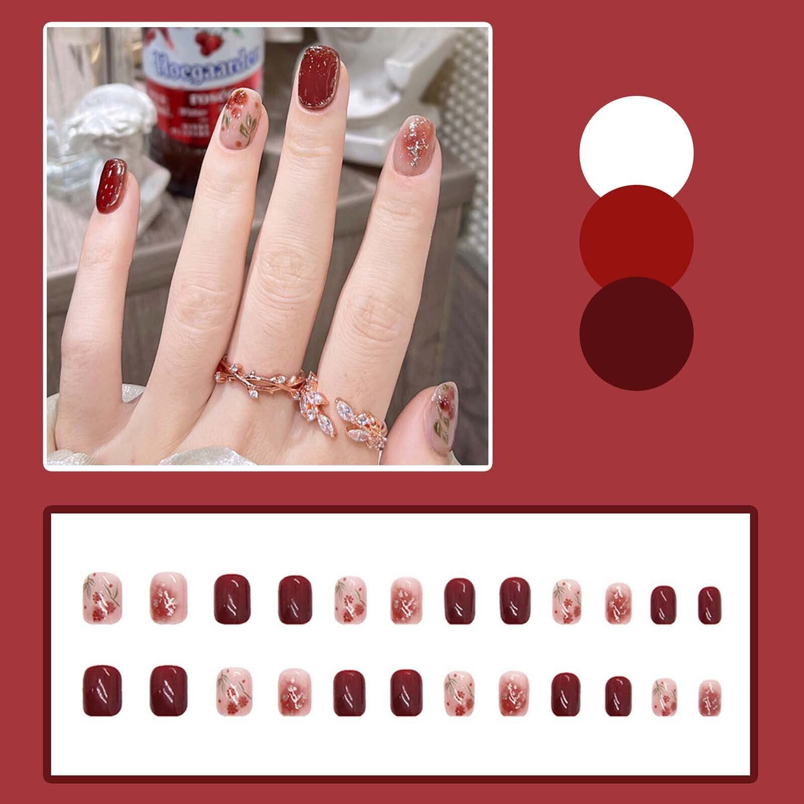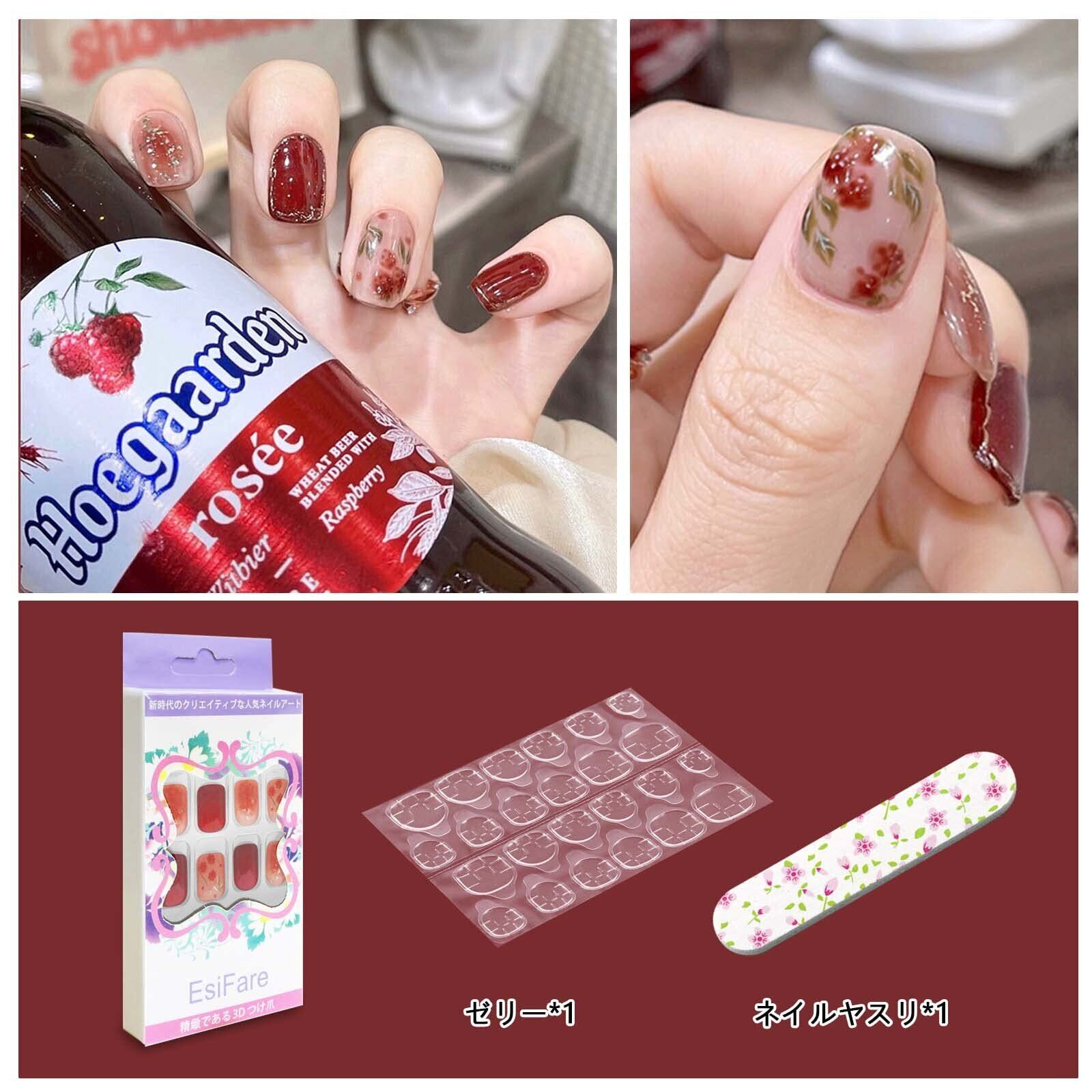 ネイルチップ つけ爪 24枚入 短め 人気ネイルチップ 赤 花嫁ネイル かわいい小花のネイル 結婚式 パーティー 週末のデート