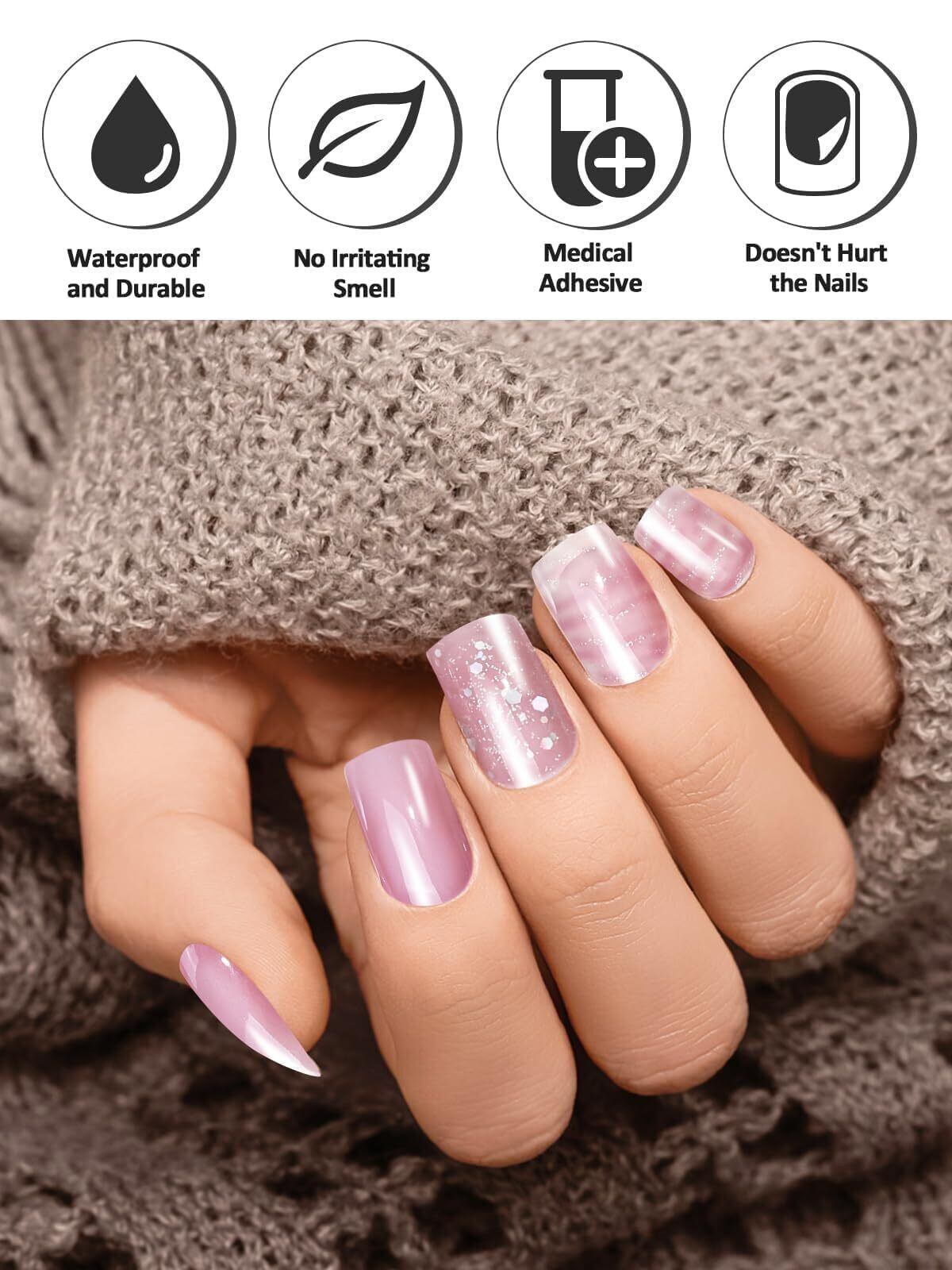 【防水性と耐久性】爪に優しい本物のジェルネイルポリッシュで作られており、軽くて快適な着け心地で、耐久性があり、明るく、厚く、安定しており、爪を損傷しません。 UVネイルライトで硬化してネイルストリップをより硬く、より強くした後、約2週間持続します。