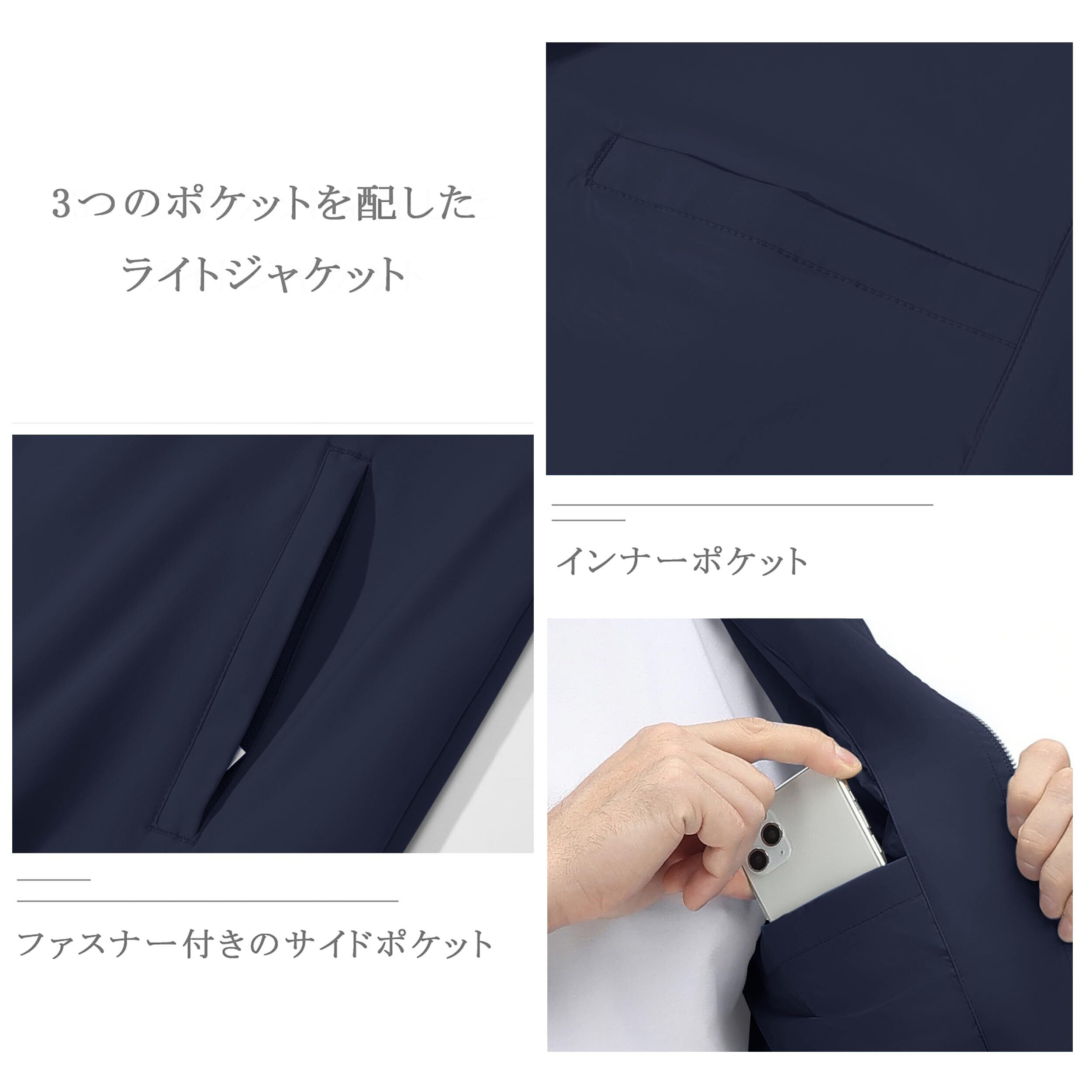 【薄手・軽量】ポリエステル素材を採用し、柔らかな肌触りと軽やかな着心地も特徴の一つ。気軽に着られる快適ジャケットです。計3つのポケットを装備、基本的な収納に満足。また、春秋を中心に楽しめます。気温の下がる冬にもコートの下にプラスワン。