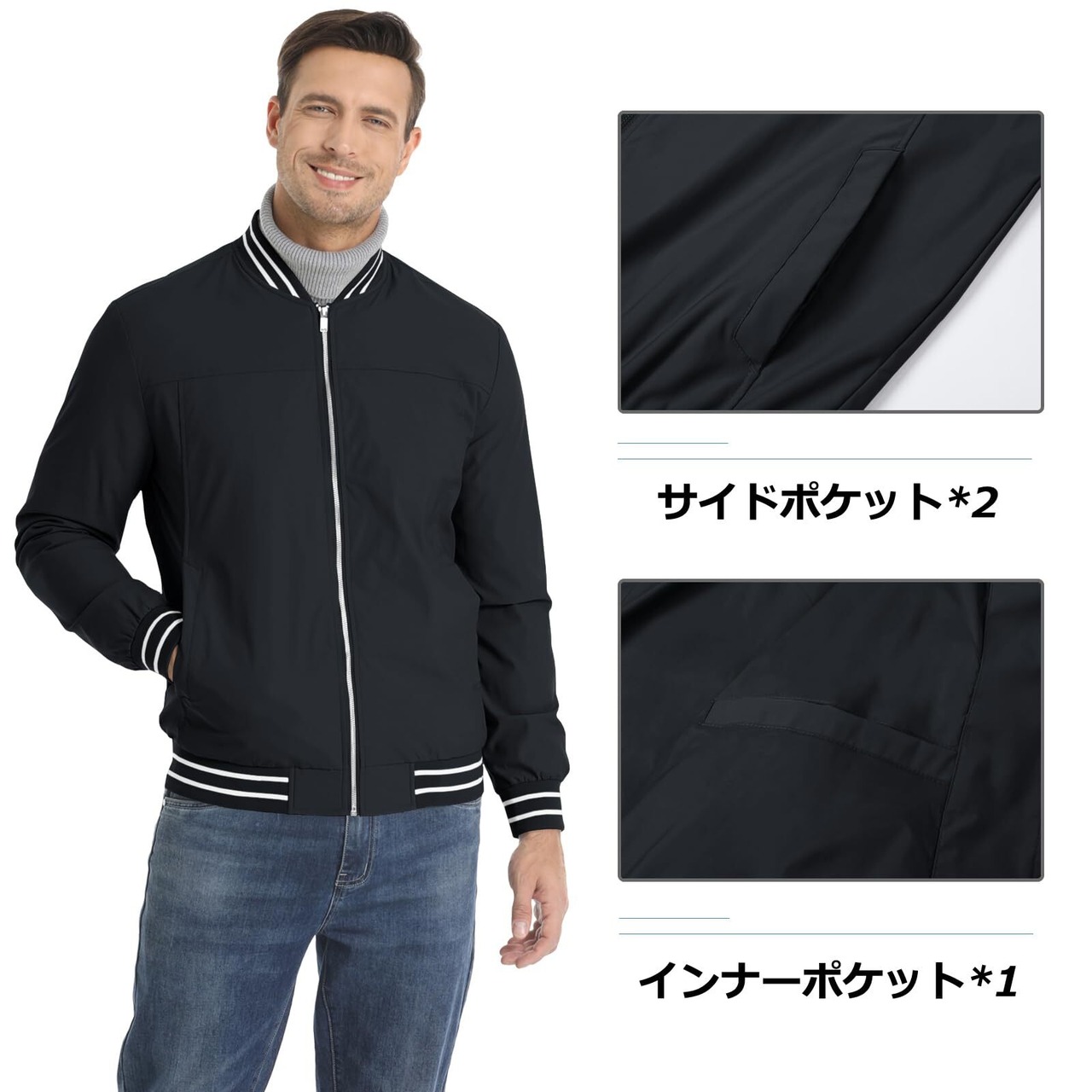 [KEFITEVD] スタジャン メンズ 薄手 ジャケット 秋服 アウター 大きいサイズ ジャンパー 無地 ウィンドブレーカー 防風 撥水 カジュアル ライトジャケット ビジネス 冬服