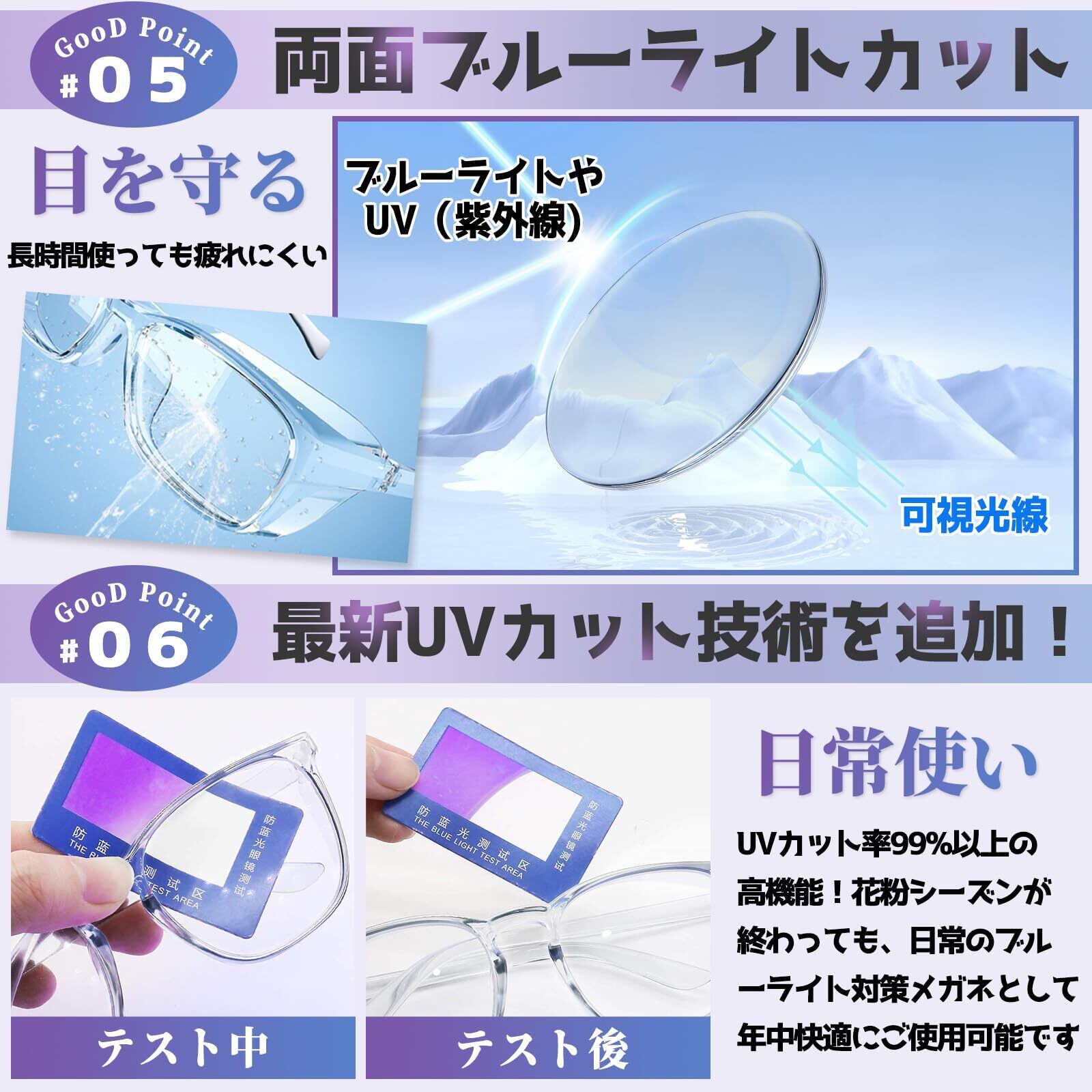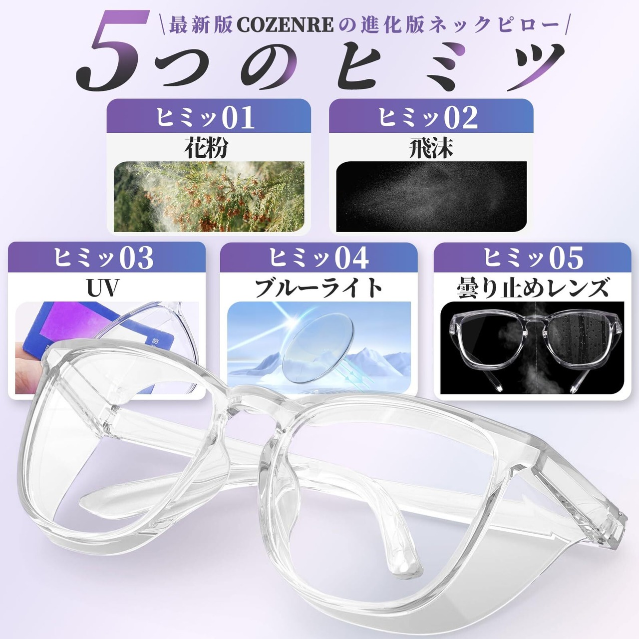 [COZENRE] 花粉防止メガネ 花粉症 メガネ 曇らない 【両面曇り止め ブルーライトカット】花粉メガネ 保護メガネ レディース メンズ兼用 花粉対策 花粉症用メガネ 花粉症予防メガネ