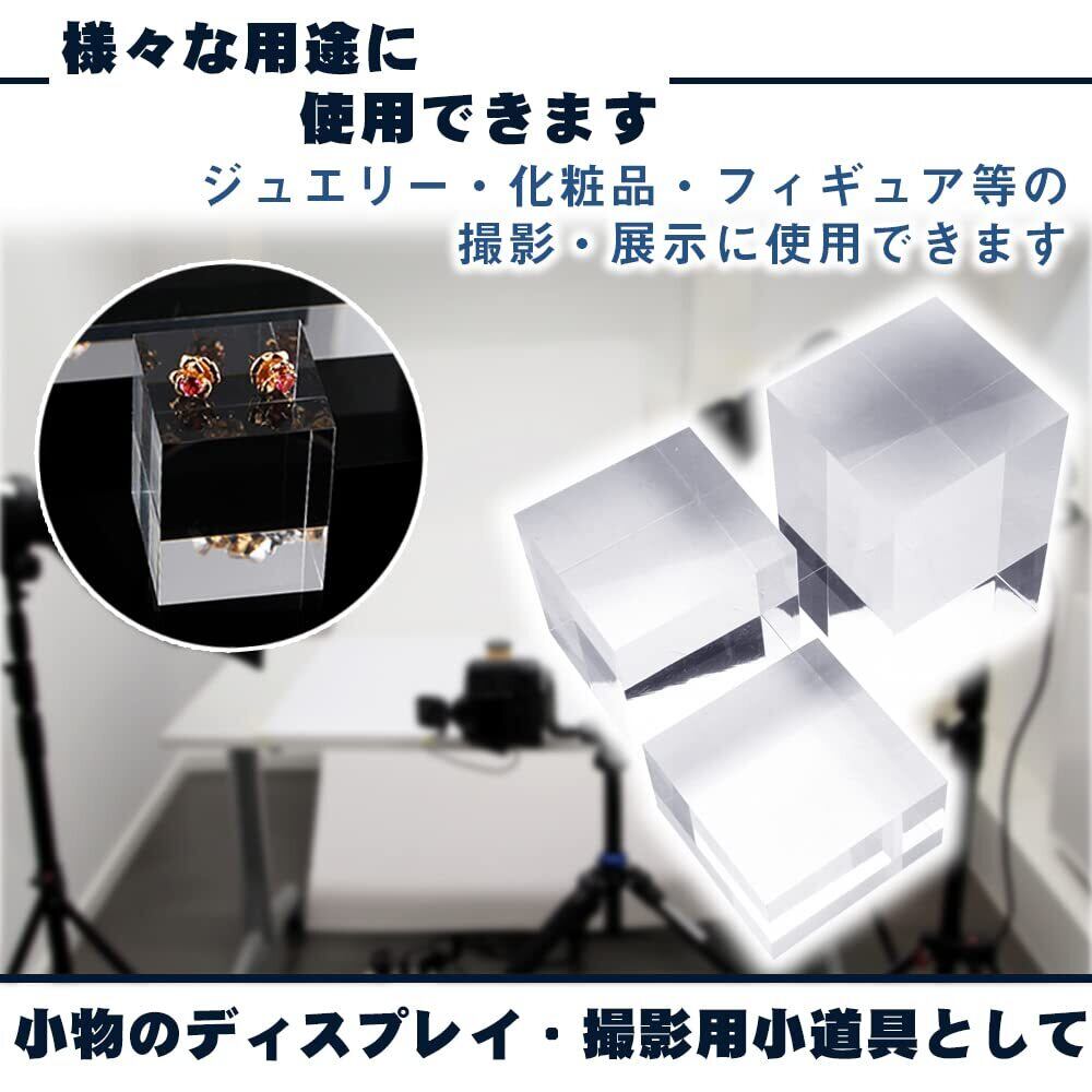 【数量限定】アクリルベース スタンド 3種サイズ 正方形 高さ出し 全面透明 展示台 商品陳列 ディスプレイ撮影 アクリル台座 アクリルブロック