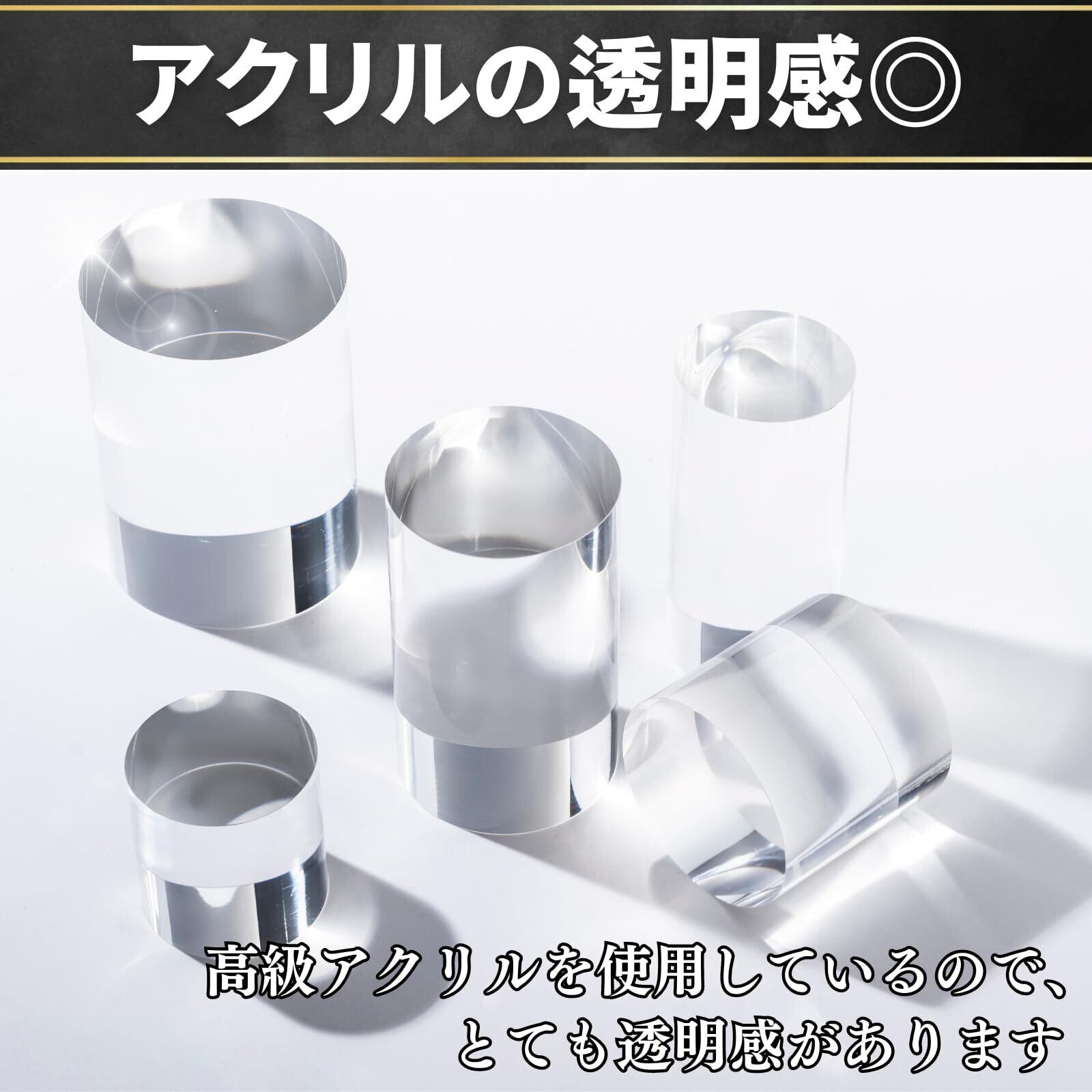 【 あなたのインテリアを一段と引き立てるアクリルキューブ! 】「アクリル本舗 アクリル ベース キューブ」は、透明なデザインが特徴の円柱型ディスプレイスタンドです。さまざまなアイテムの展示や撮影に最適で、あなたの大切なコレクションを美しく魅せることができます。