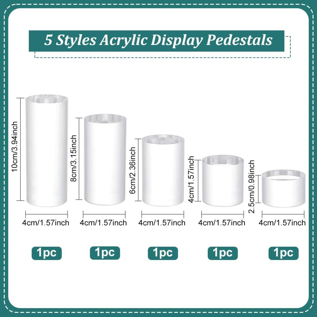 BENECREAT 5個 アクリルスタンド アクリル台座 クリア 5サイズ 円柱 アクリル展示台 ジュエリー陳列 透明ディスプレイスタンド 展示用スタンド