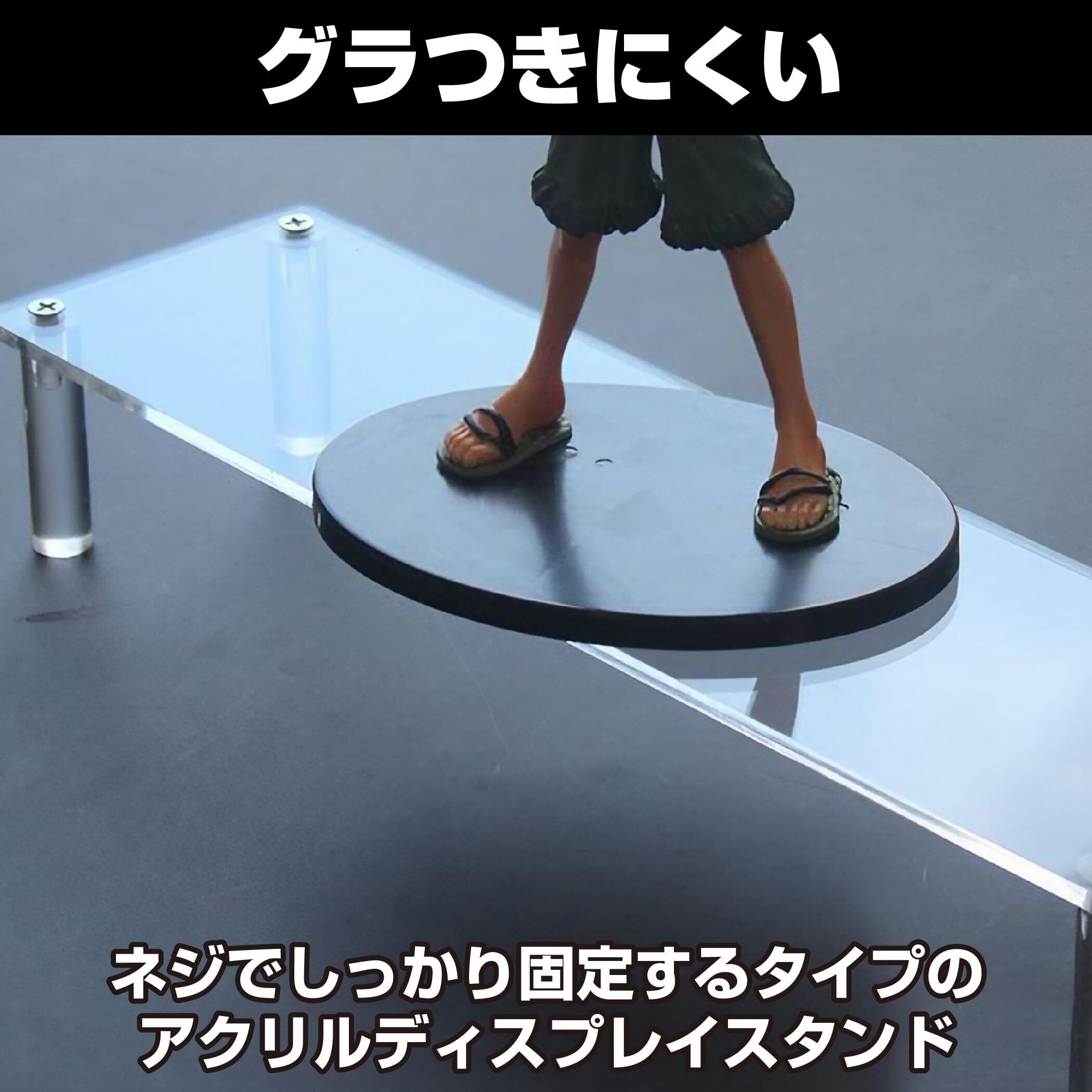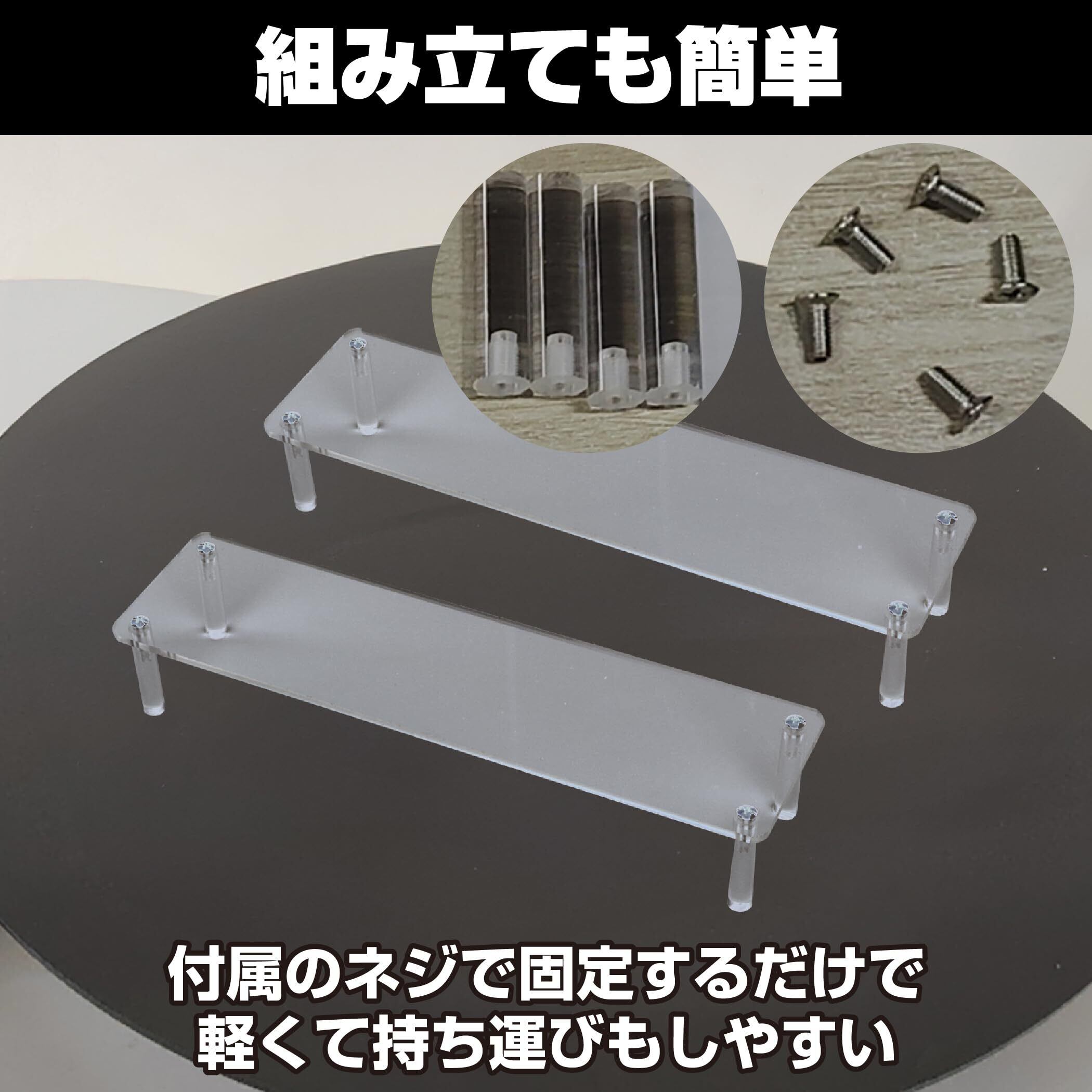 グラつきにくい:ネジでしっかり固定するタイプのアクリルディスプレイスタンドですので、安定感があってグラつきにくく、棚の上などにも置きやすいです。大切なコレクショングッズを飾りたい時にぜひ活用してみてはいかがでしょうか。