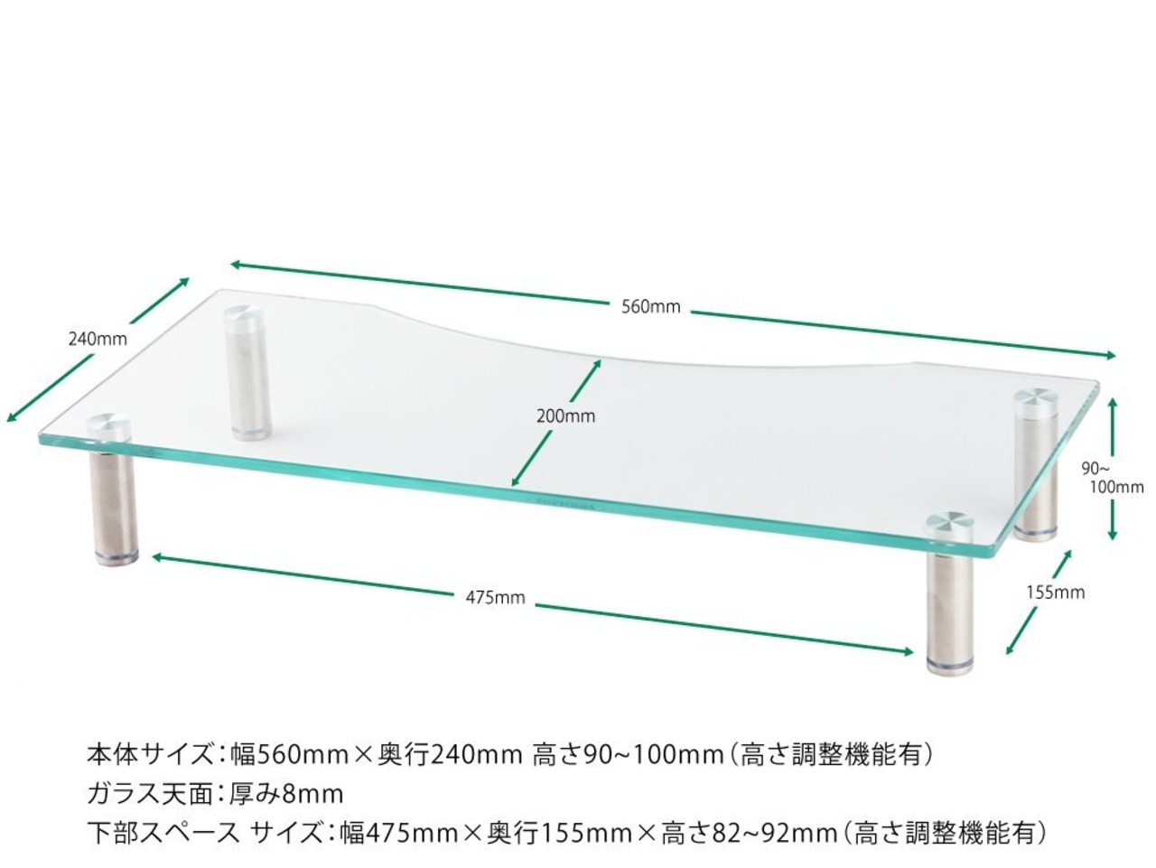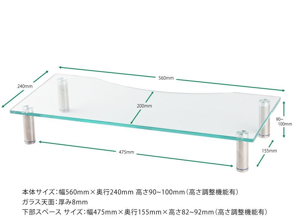 ■サイズ:幅560mm × 奥行240mm × 高さ90~100mm ※高さ調整機能有 ■ガラスの厚み 8mm