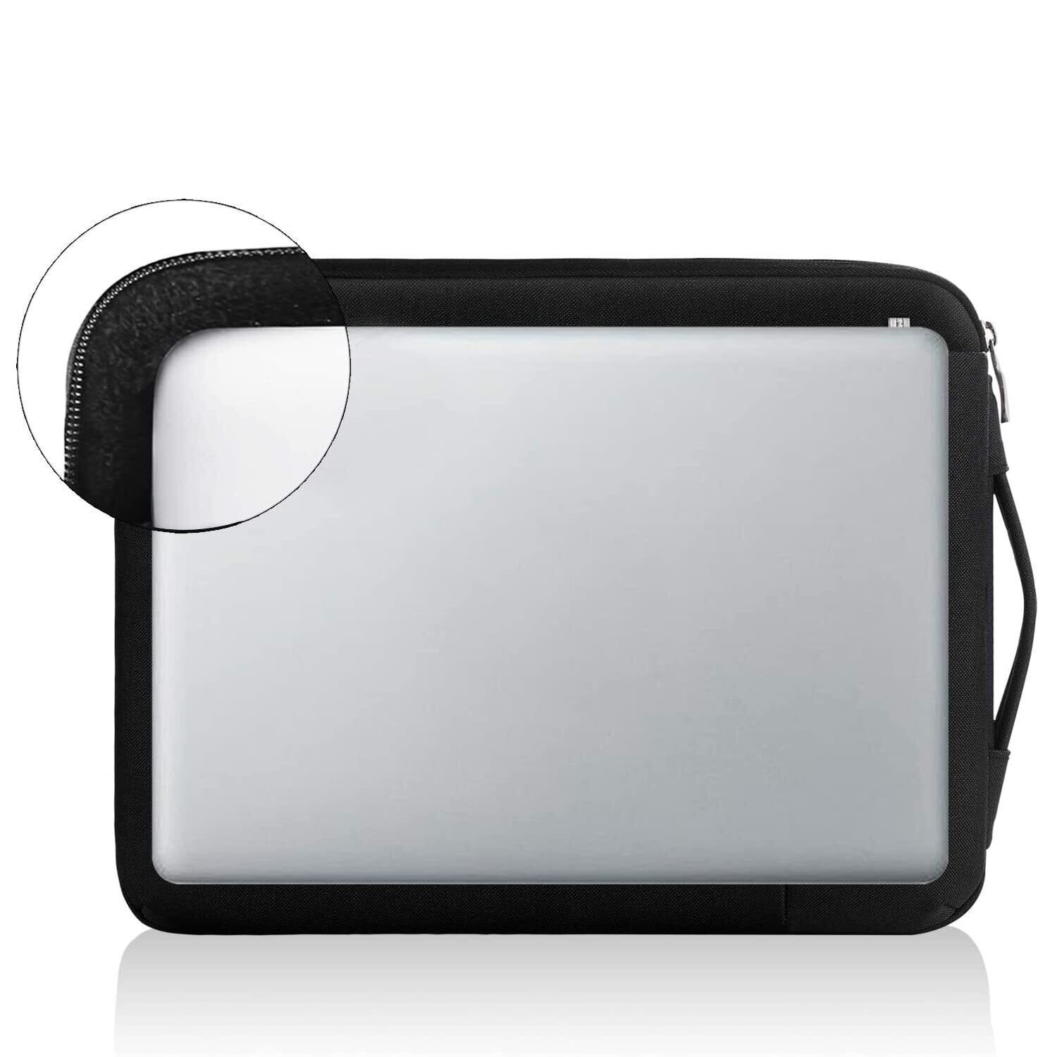 【360°保護耐衝撃】パソコンケースの開口部にある保護ストリップは、ジッパーが使用中にパソコンの表面を傷つけるのを防ぎ、パソコンを長期間新品のように美しく保護します。パソコンケースの表面は防水性と耐摩耗性に優れた高品質な素材で作られており、内部にはふわふわのベルベット裏地が厚いクッションとして使用され、優れた衝撃吸収性能を持っています。通勤や学校での予期しない衝撃や傷つけから守り、非常に頑丈で耐久性に優れています。