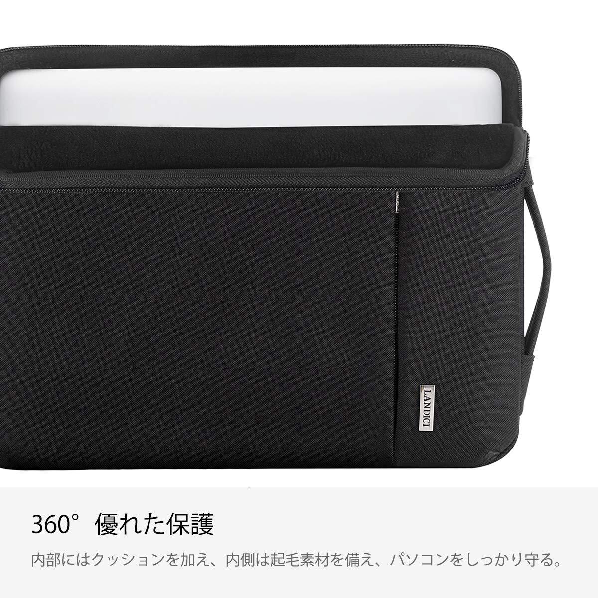 【数量限定】LANDICI 360°保護 パソコンケース 13 14インチ pcケース 衝撃吸収防水 ノートパソコン ケース 13.3/13.6 MacBook Air M4/M3/M2/M1 2025-2018、MacBook Pro 13/14、Surface Laptop 5-1世代/Studio 2021/Book 3/2/1、Dell、ASUSに対応 13-14型ノートpcケース 手提付き,ブラック