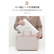 【軽量と便利】:取っ手が付いて持ち運びに便利なノートpcバッグ。背面に固定用の帯を付き、キャリーケースにも取り付け可能なので、旅行や出張にも便利です。