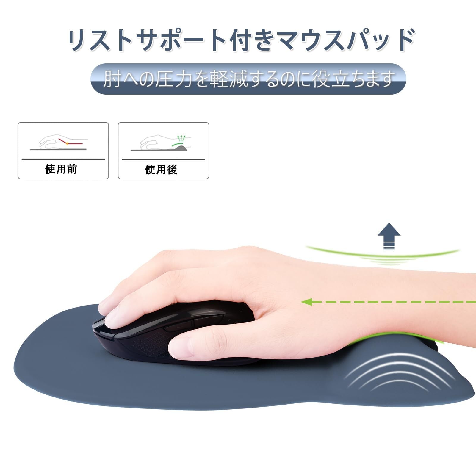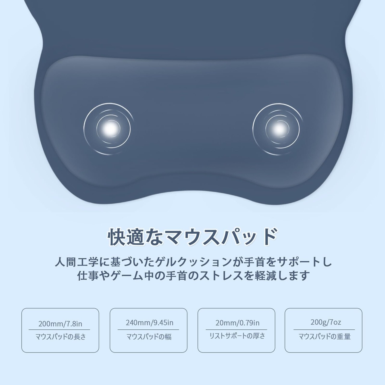 EooCoo マウスパッド ストサポート付きリストレスト、人間工学に基づいたゲーミングマウスパッドの推奨疲労軽減、低反発ポータブルで快適なマウスパッド、ラップトップ、オフィス、自宅、旅行用、滑り止めベースく耐久性 - ブルー
