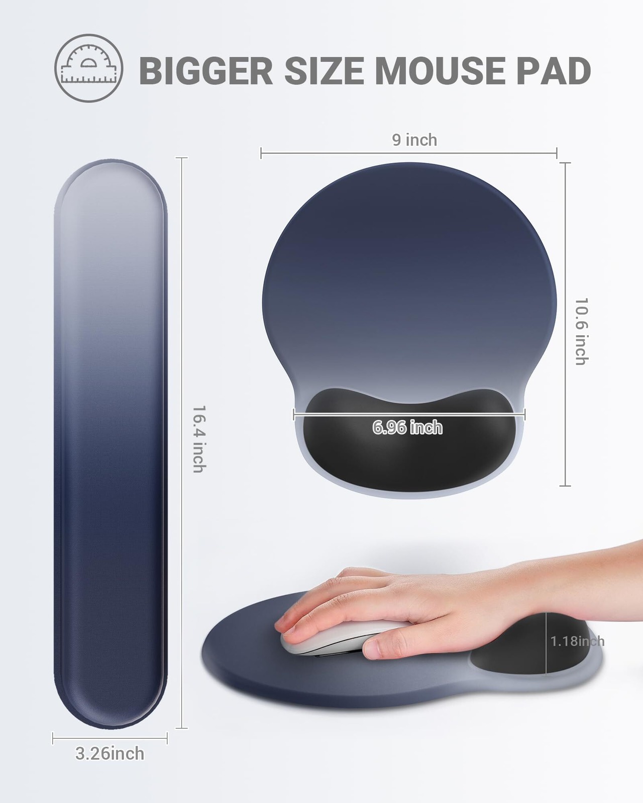 マウスパッド リストレスト 一体型マウスパッド 手首サポート 人間工学に基づいた(グラデーションブルーブラックセット)