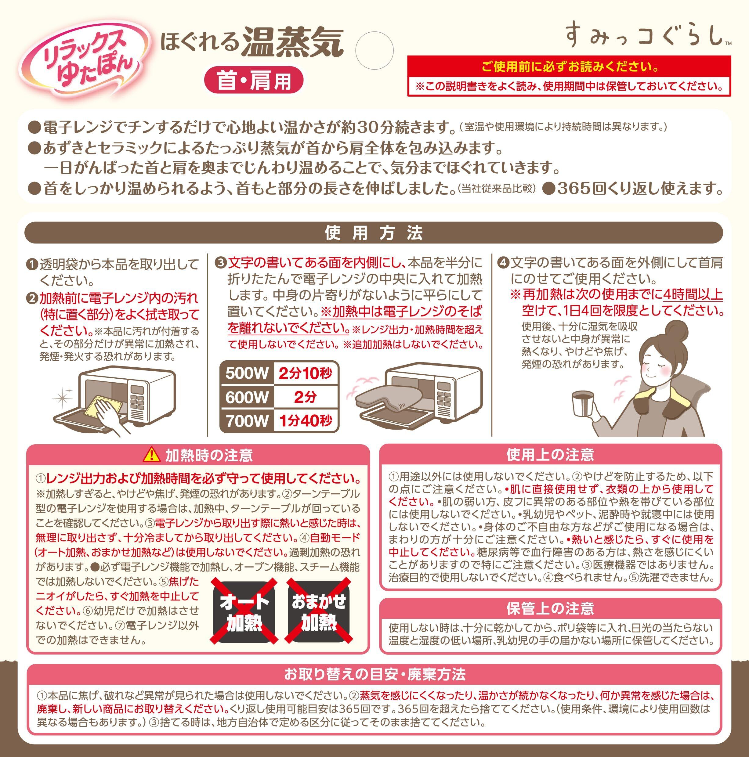 ・あずきとセラミックによるたっぷり蒸気が首から肩全体を包み込みます。
